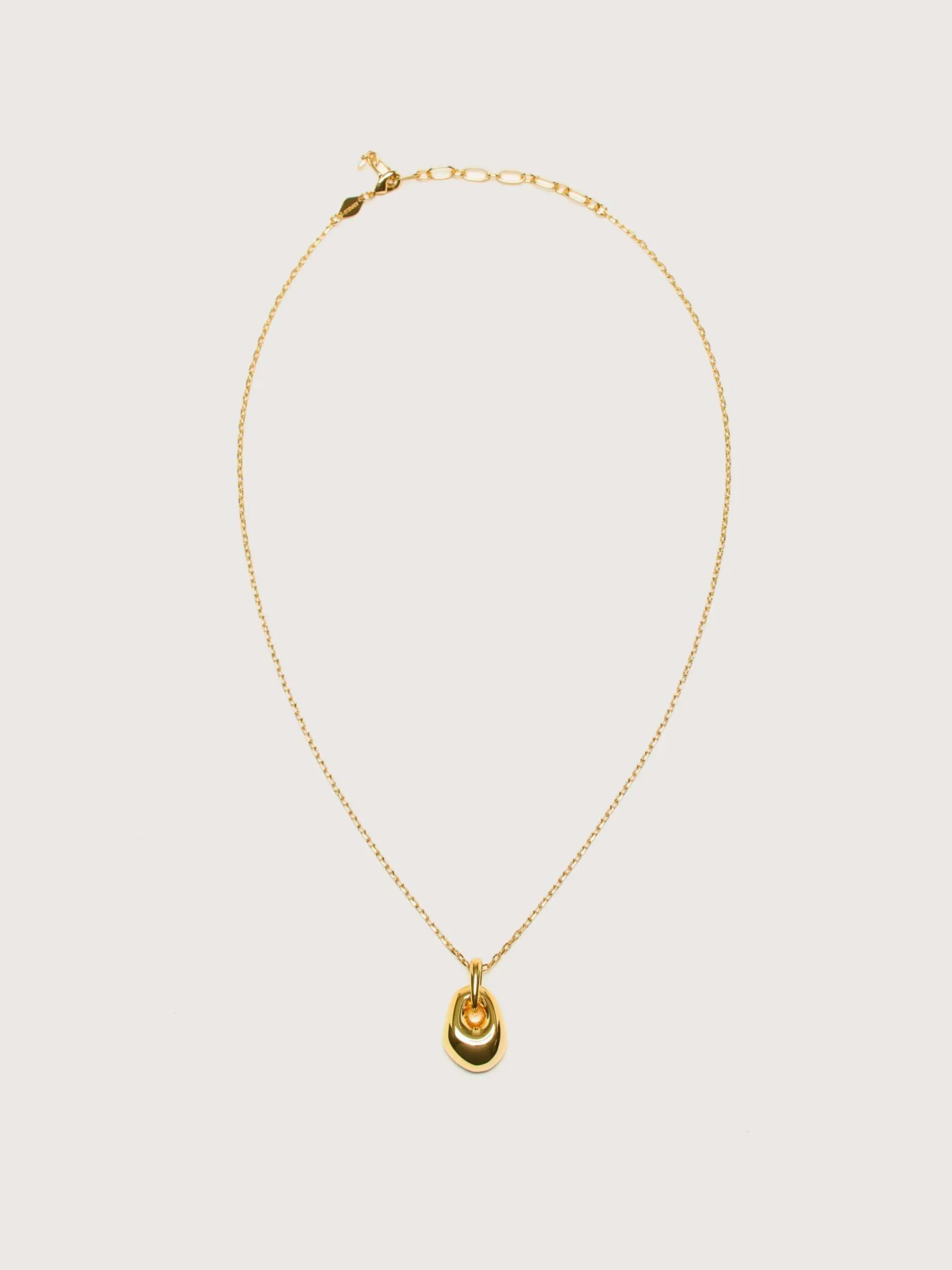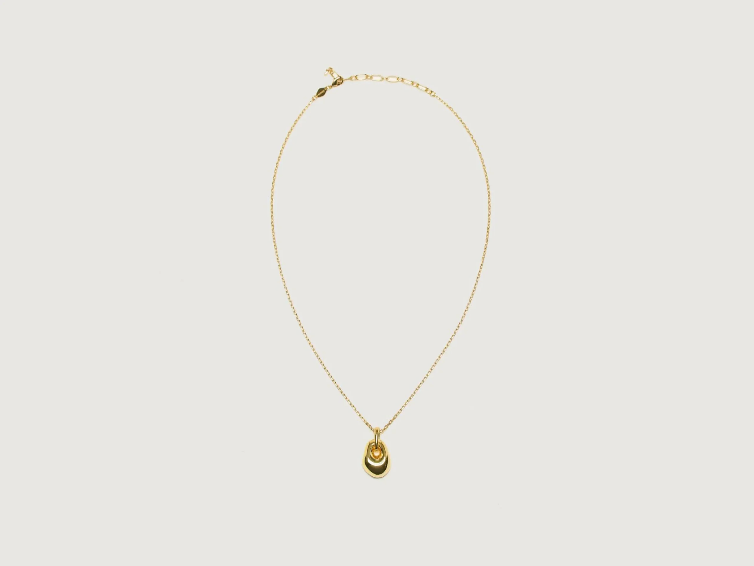 Le collier Golden Pebble d’Anni Lu est inspiré des plages de galets et conçu en laiton plaqué or 18 carats.