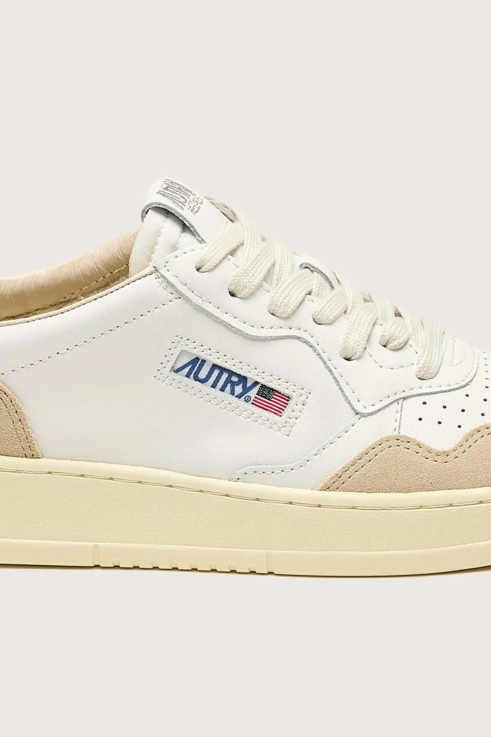 Les sneakers Autry Medalist Low présentent une tige en cuir blanc souple, des empiècements en suède doux et un bout perforé.