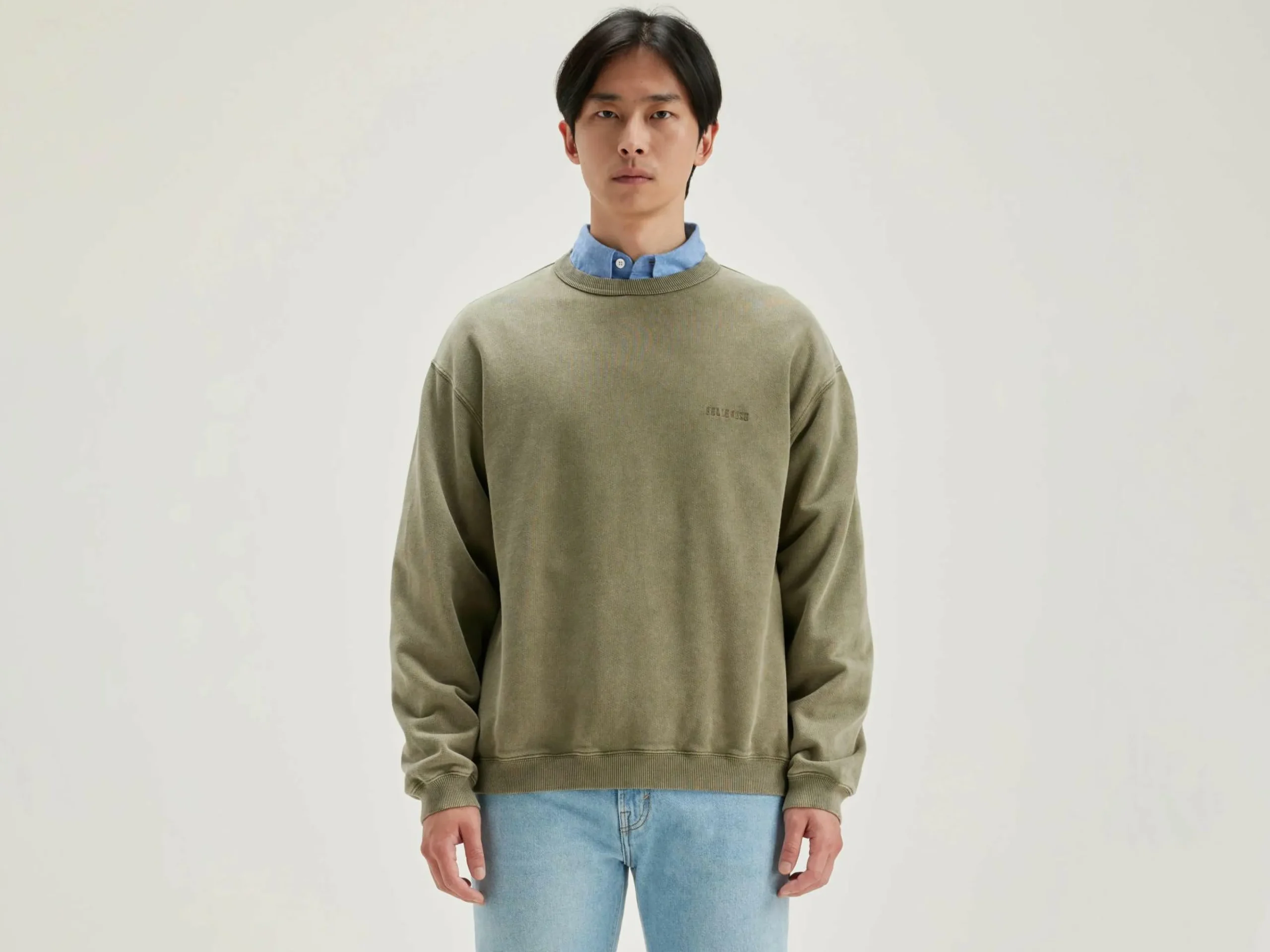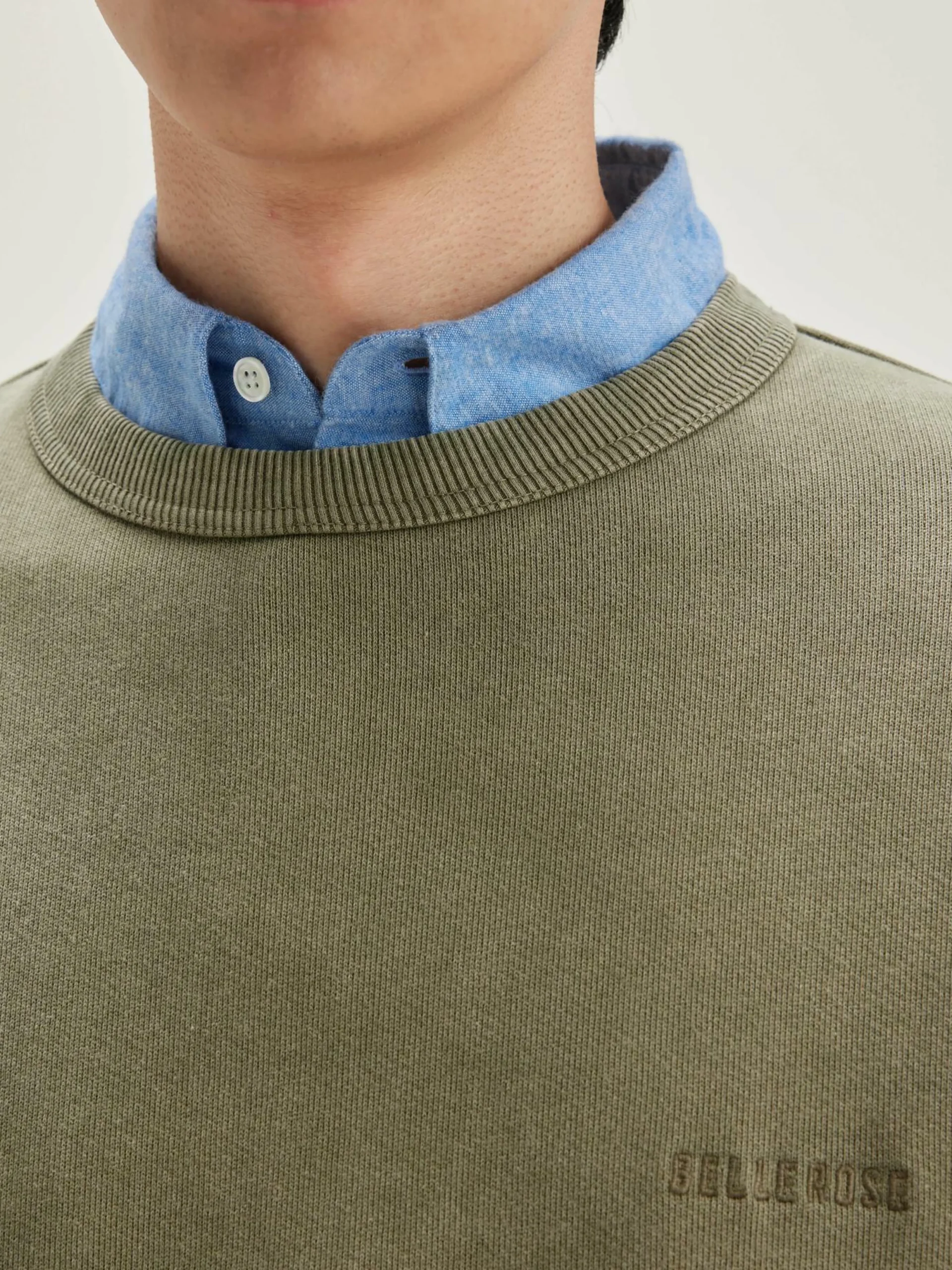 Sweatshirt décontracté en jersey de coton vert militaire.