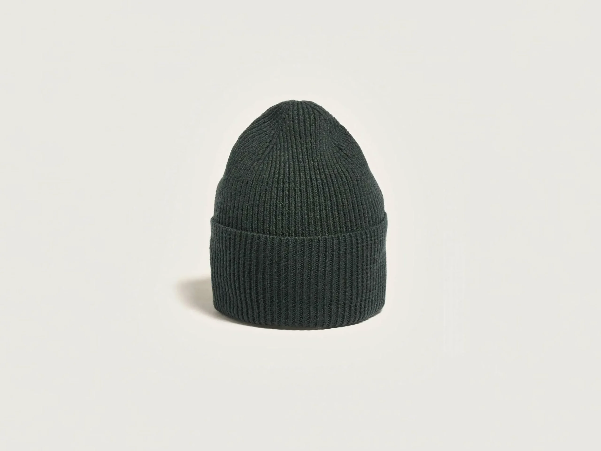 Bonnet à bord replié en maille cotelée vert bouteille.