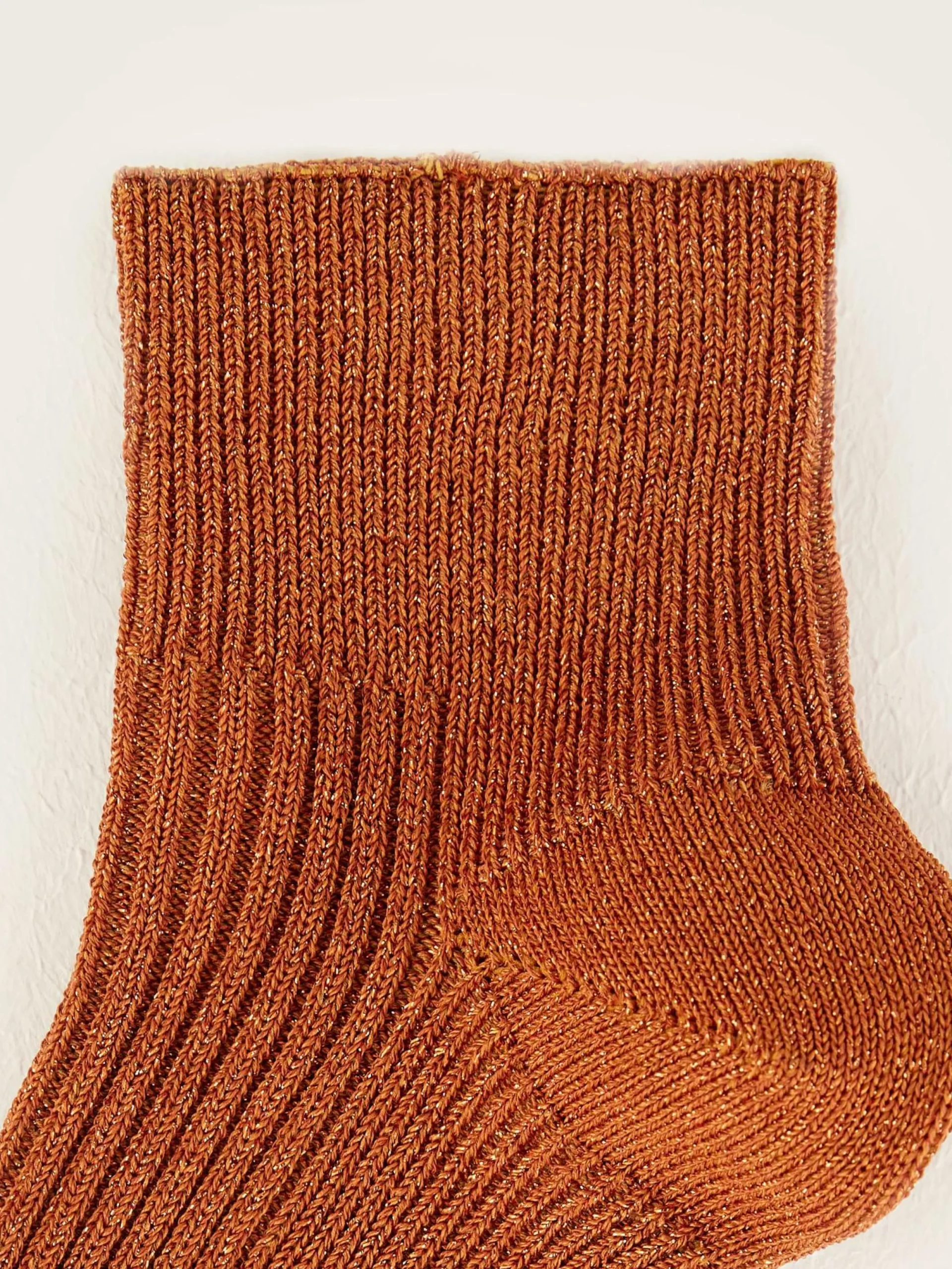 Chaussettes courtes en maille côtelée couleur orange avec un fini lurex.