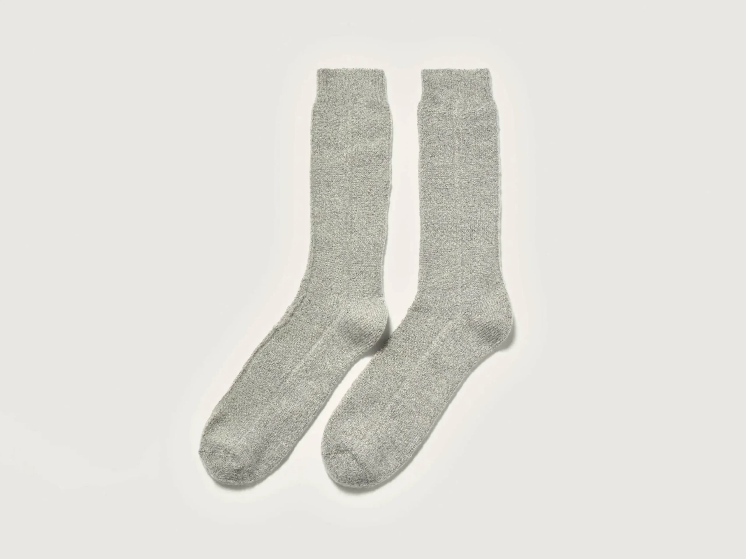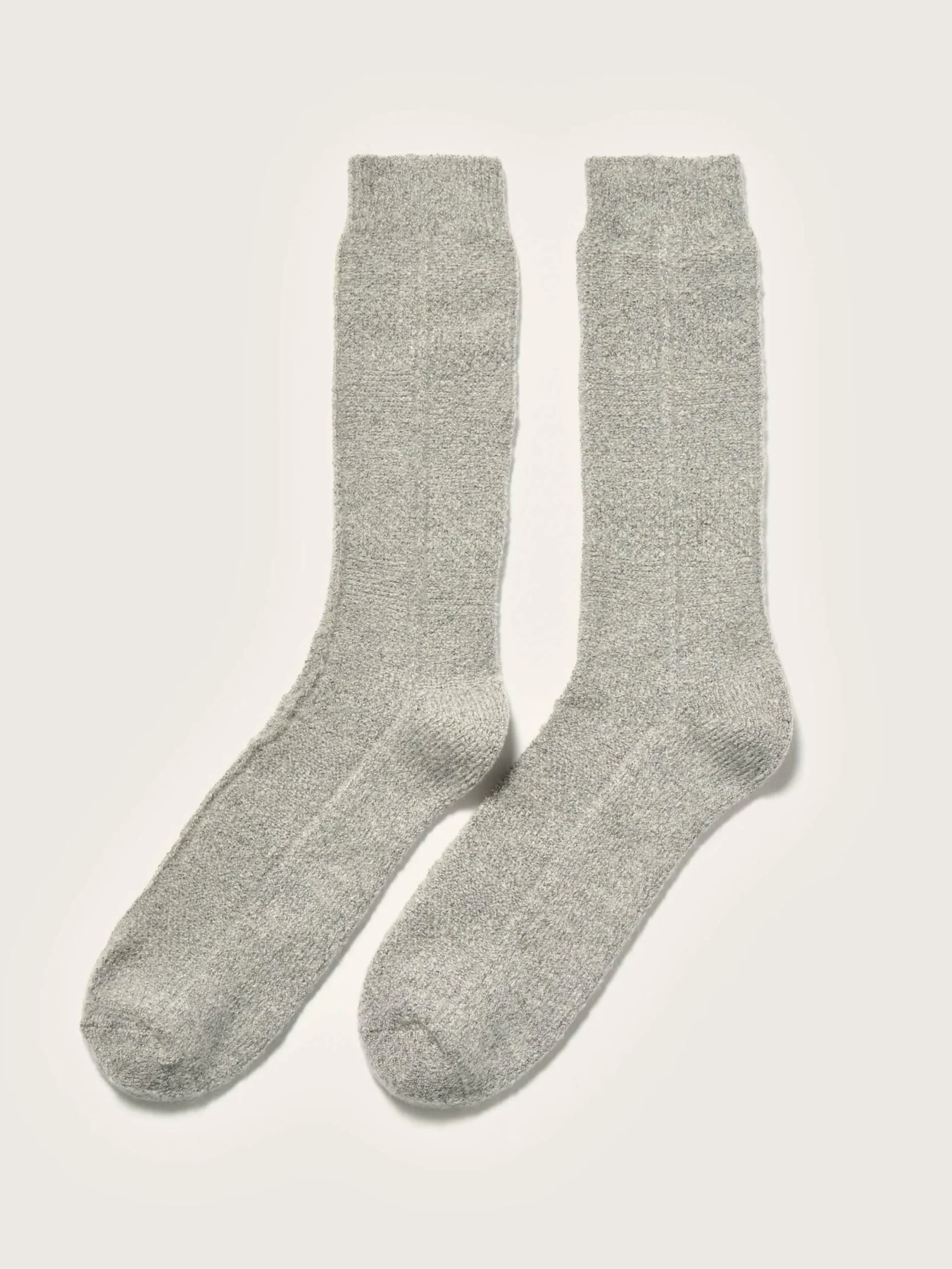 Chaussettes classiques couleur gris chiné tricotées en maille fantaisie avec motif à carreaux.