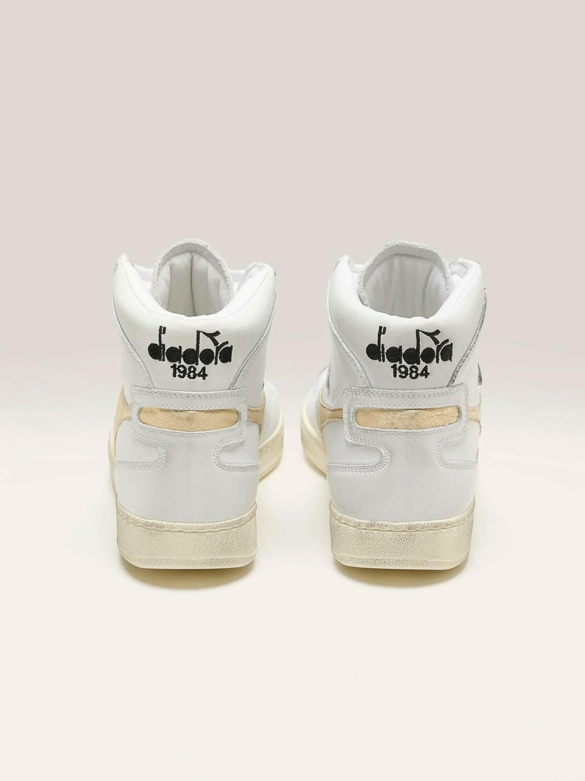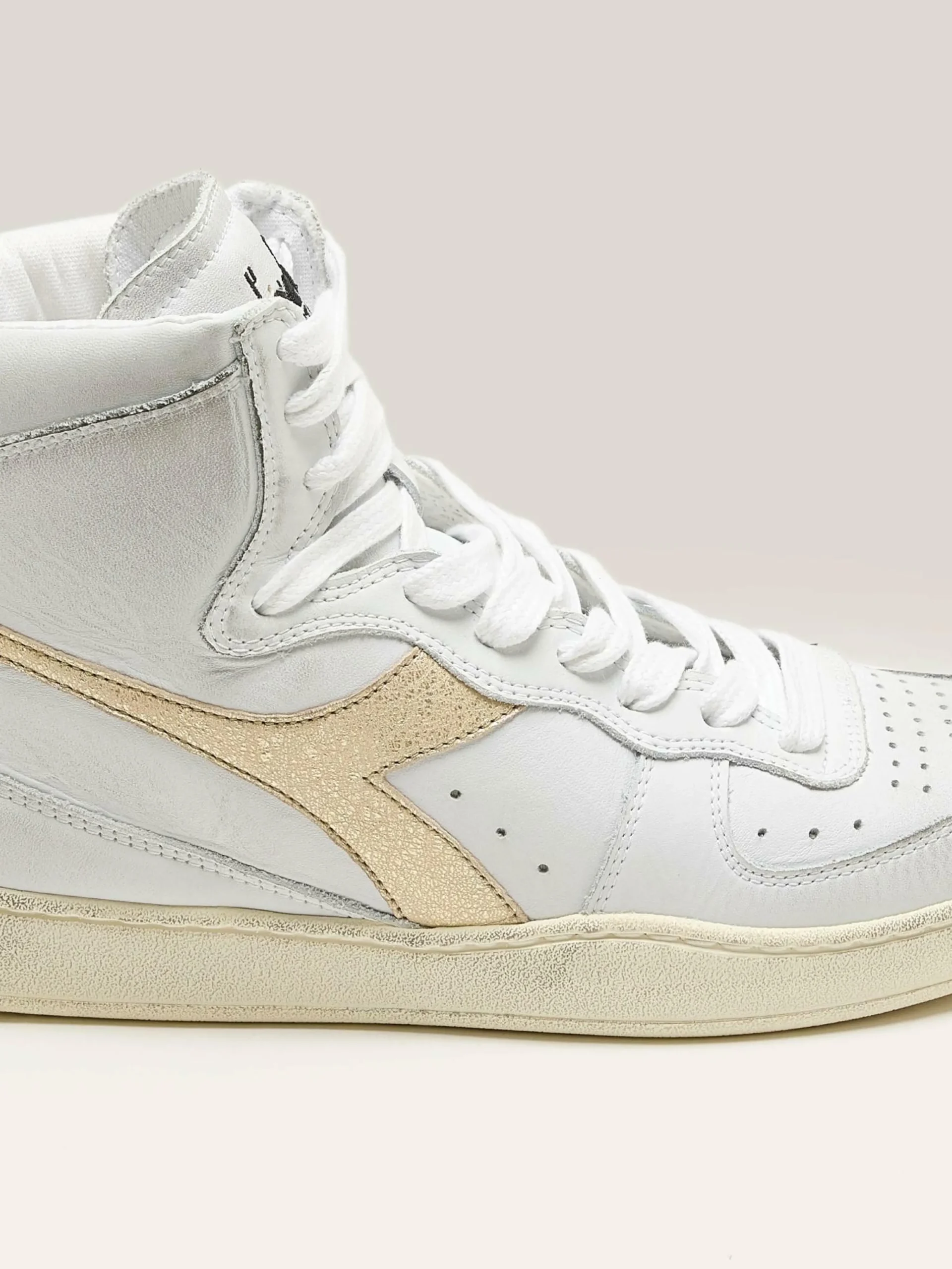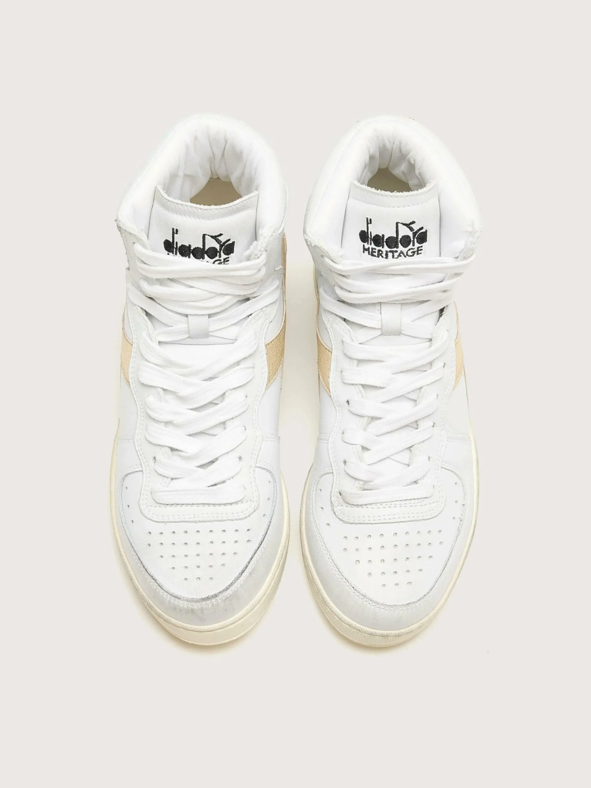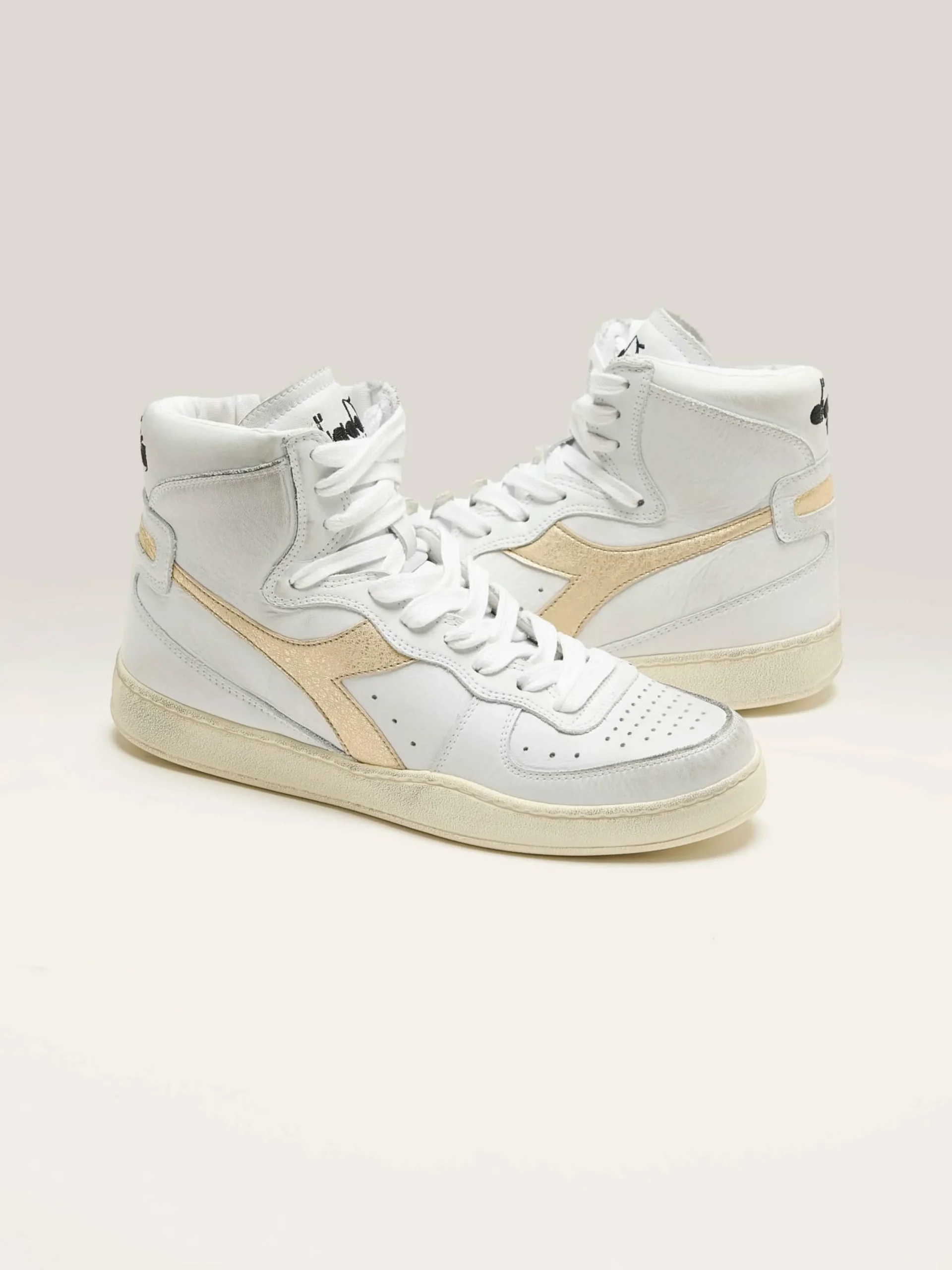 Les sneakers montantes Diadora Mi sneakers Used Heritage sont dotées d’un dessus en cuir pleine fleur avec un traitement spécial stonewash.