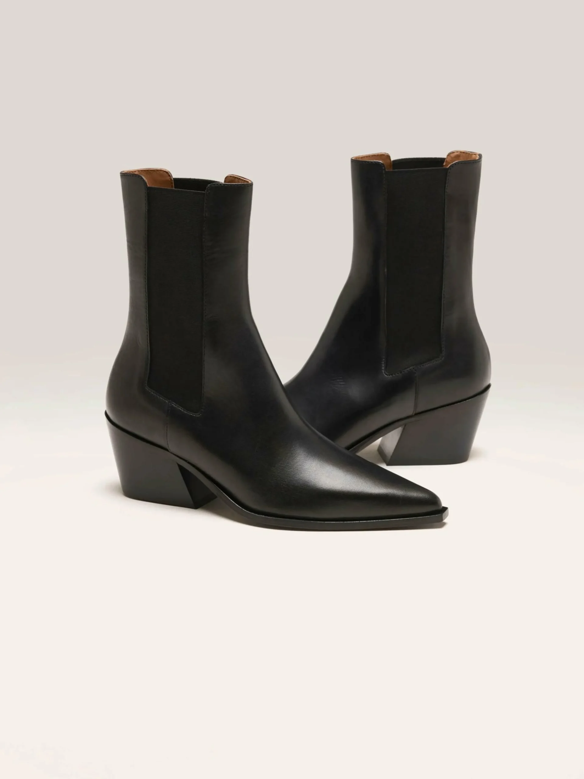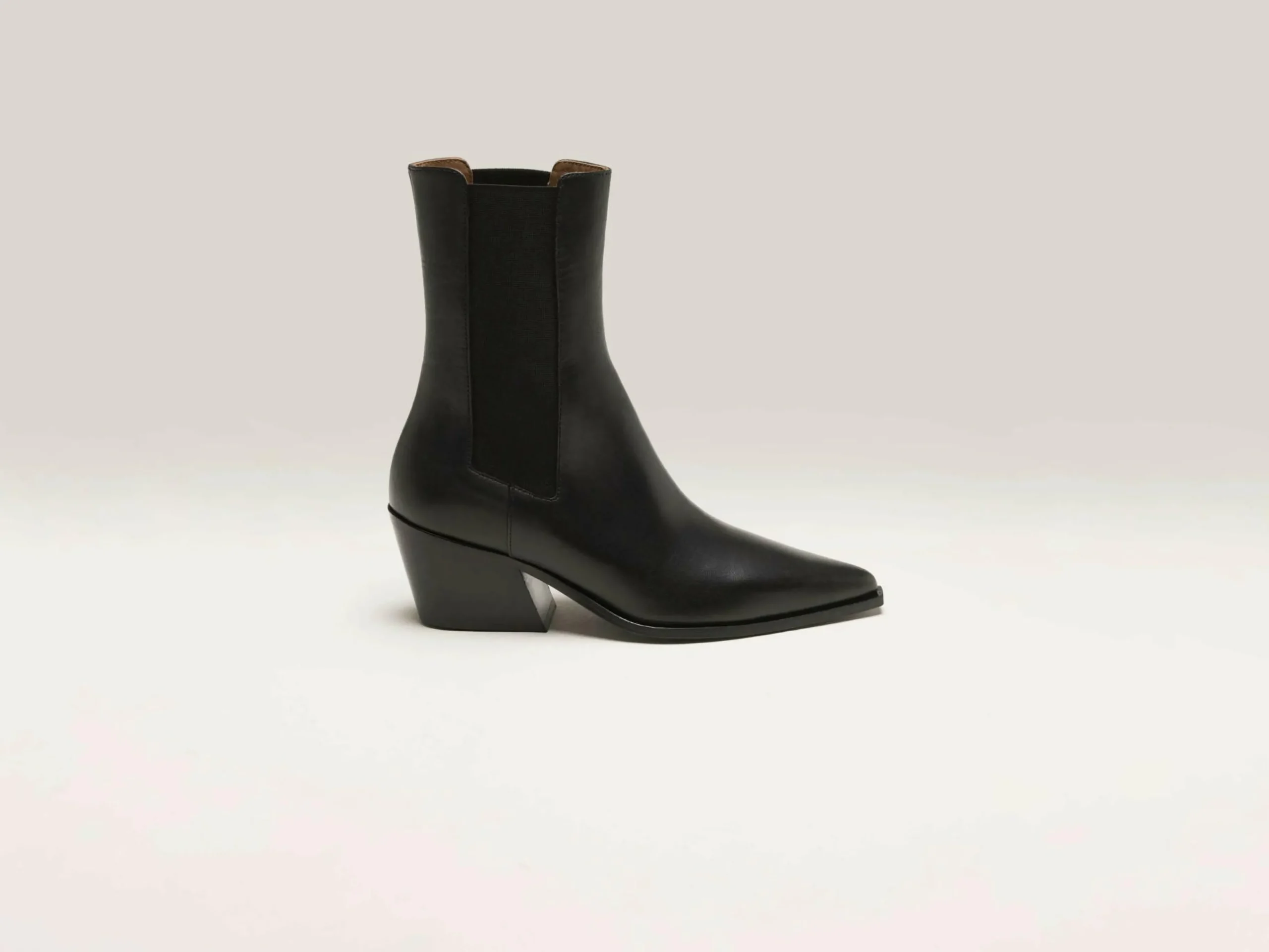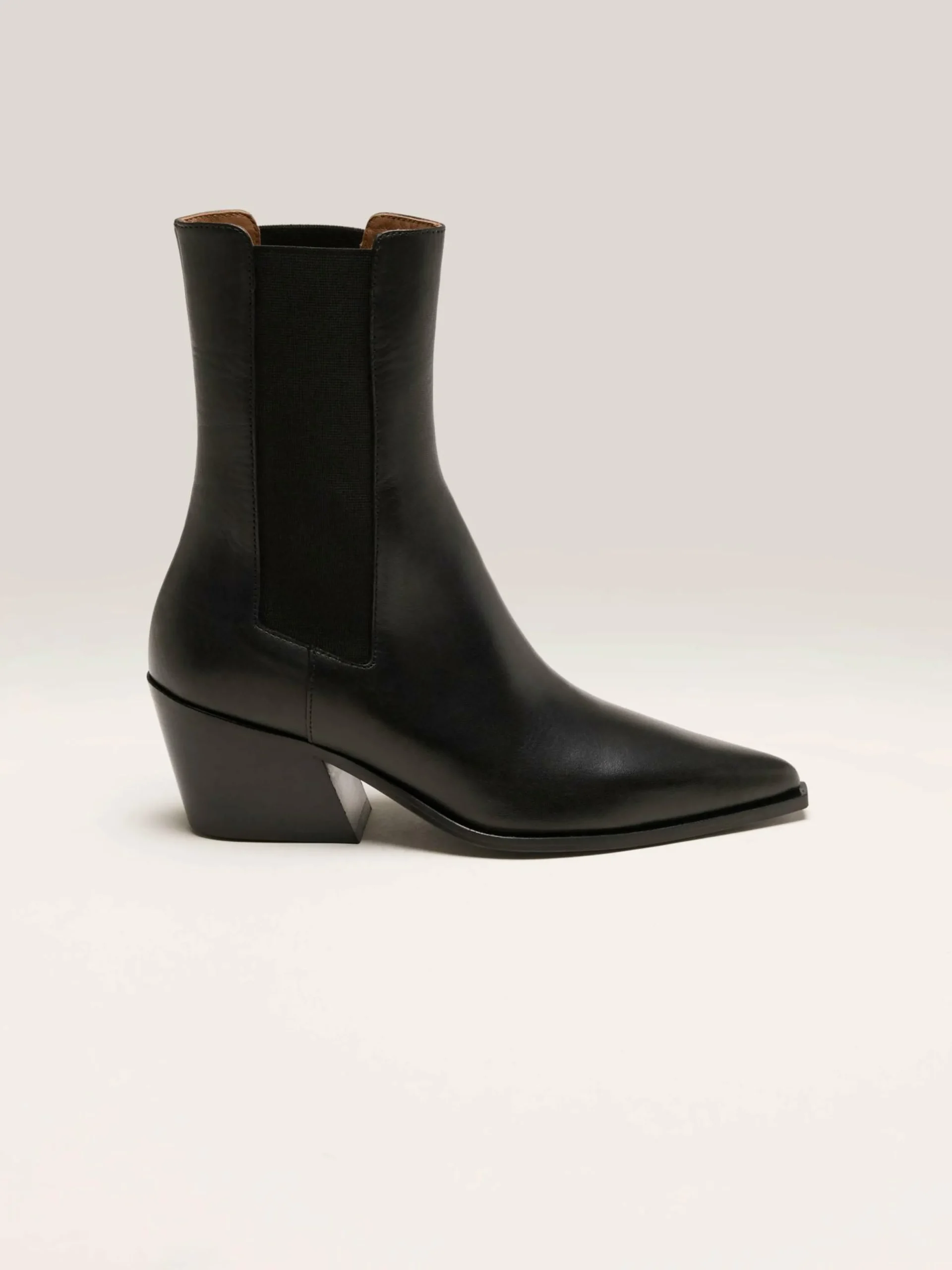 La bottine Flattered Sandra est un modèle moderne en cuir noir avec un bout pointu.