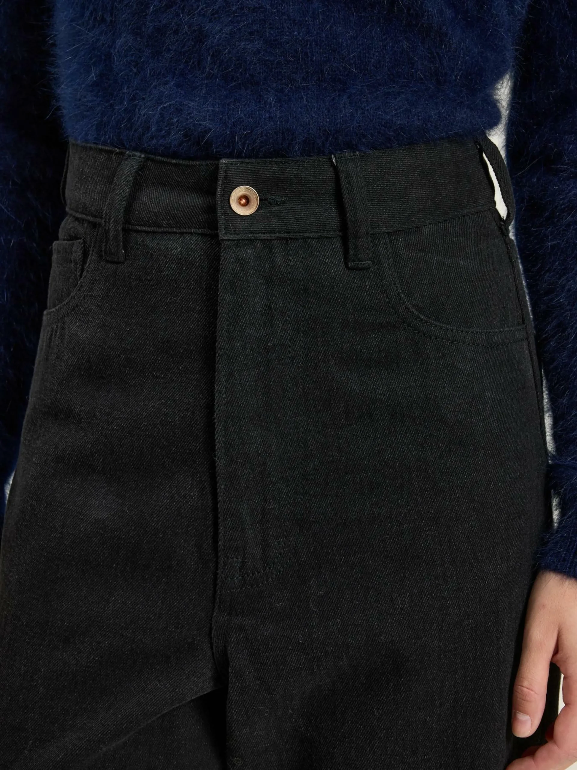 - Denim de poids moyen, sans élasticité