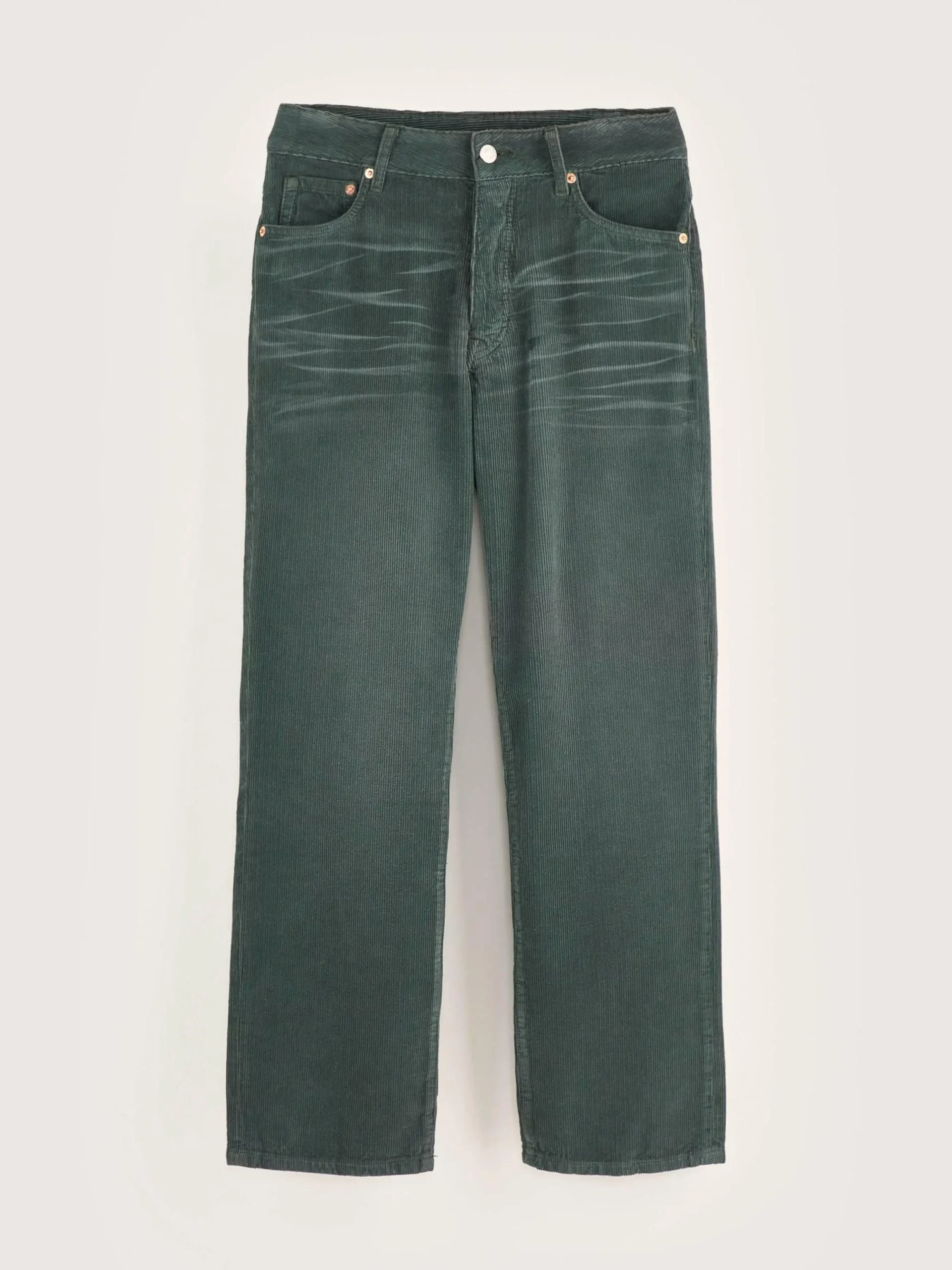 Jean regular taille haute en denim de coton vert foncé.
