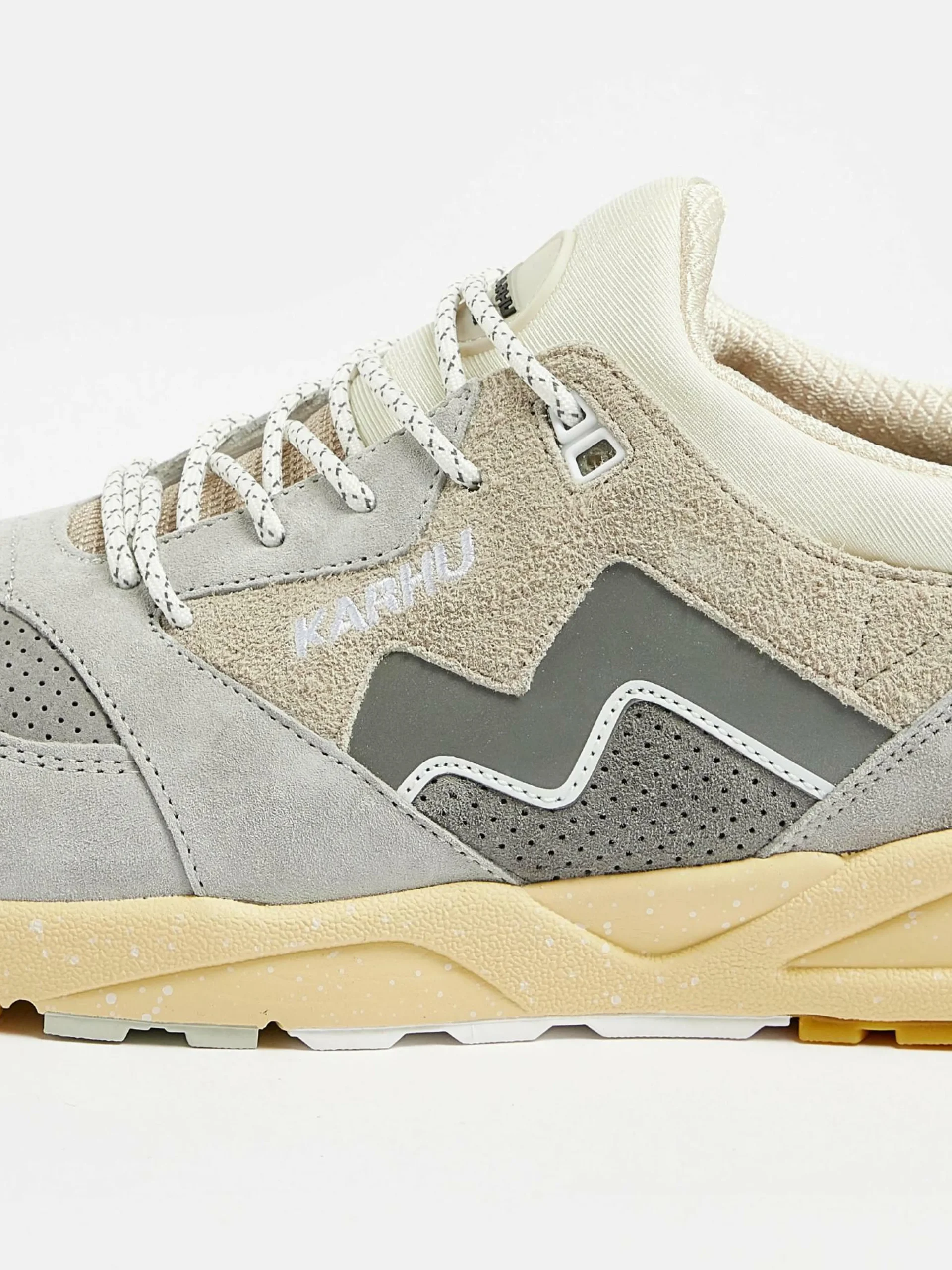 Les sneakers lifestyle Karhu Aria 95 présentent une structure monosock en lycra et une tige en suède avec maille déperlante.