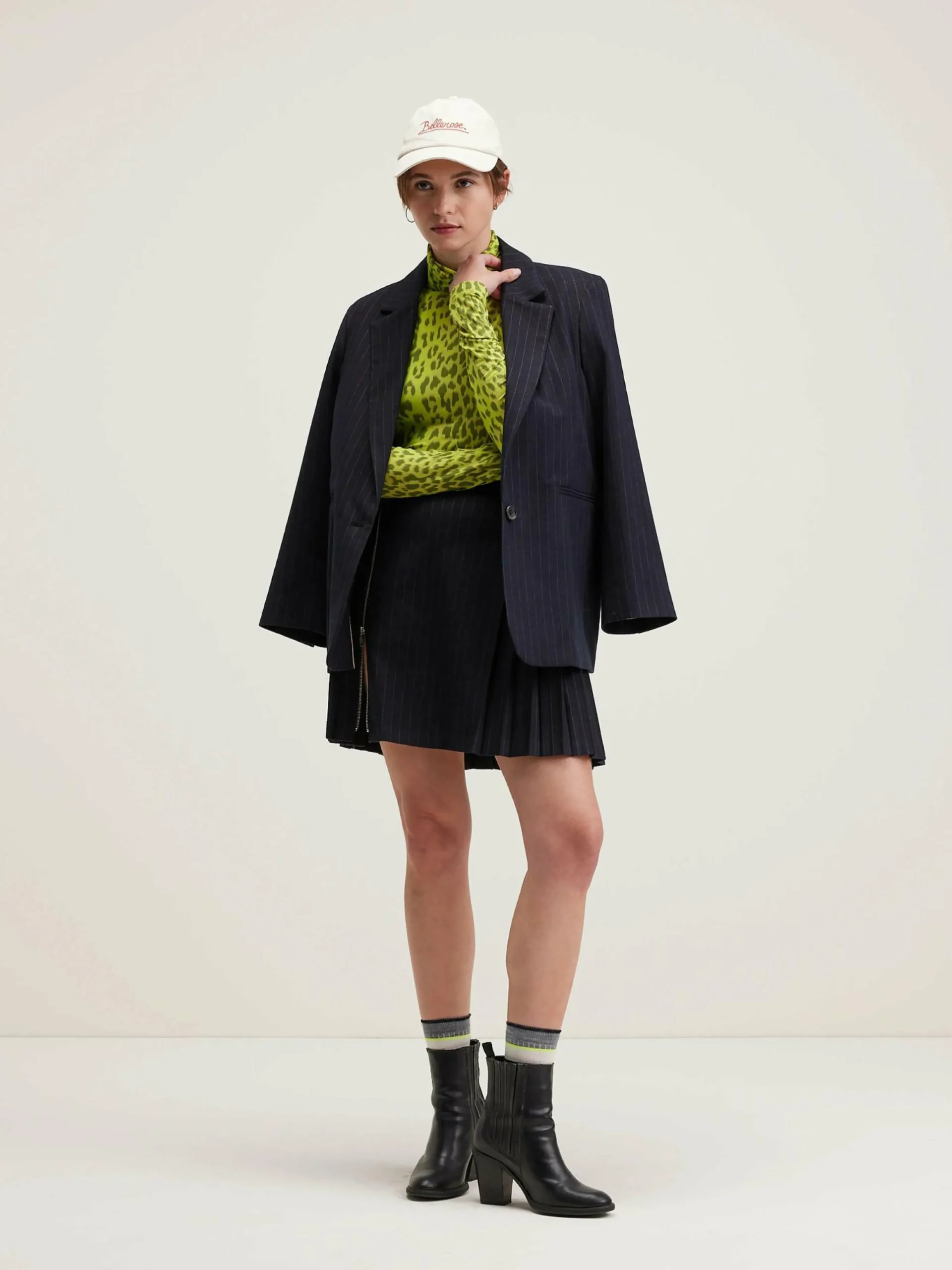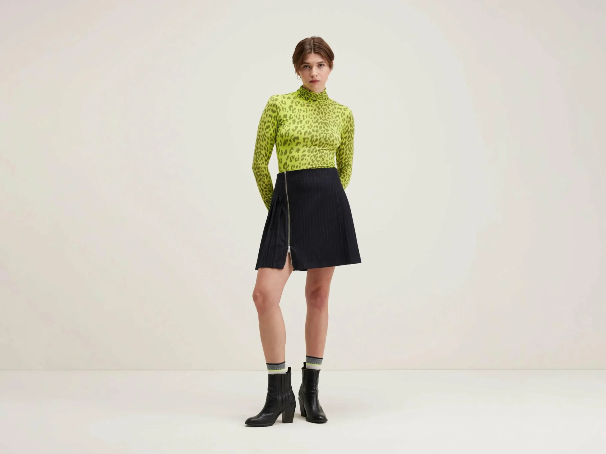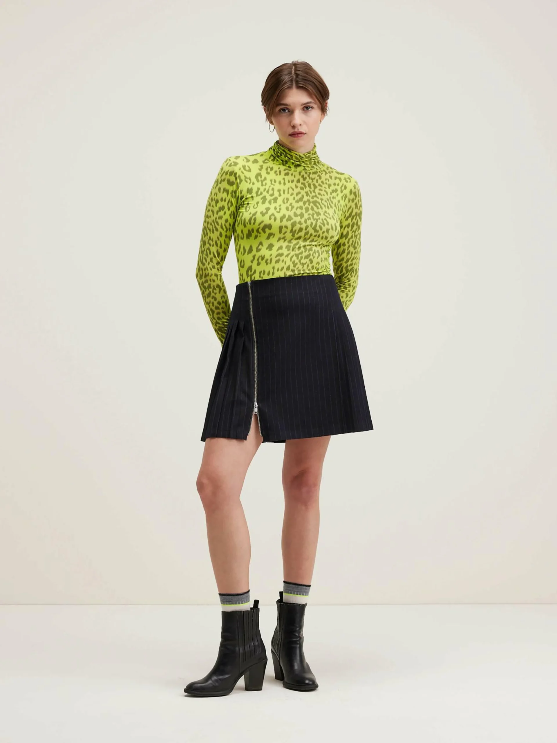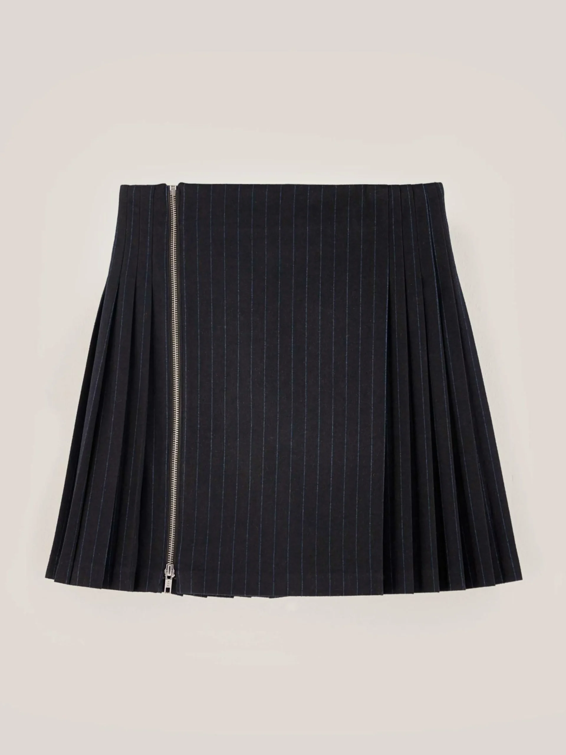Jupe plissée en flanelle rayée avec fermeture par zip métallique.