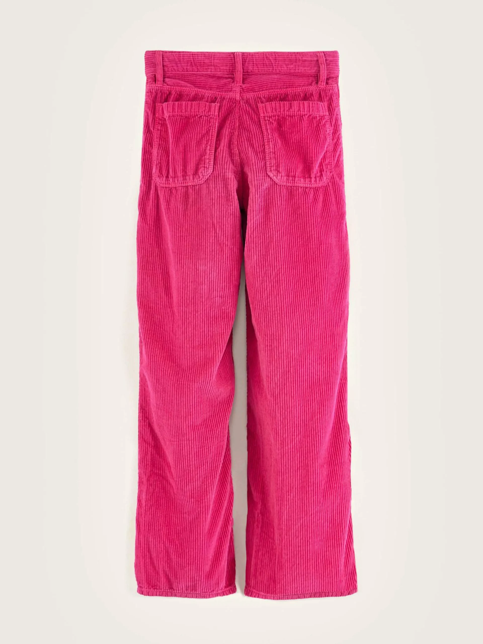Pantalon taille haute à jambes larges en velours de coton côtelé, couleur fuchsia.