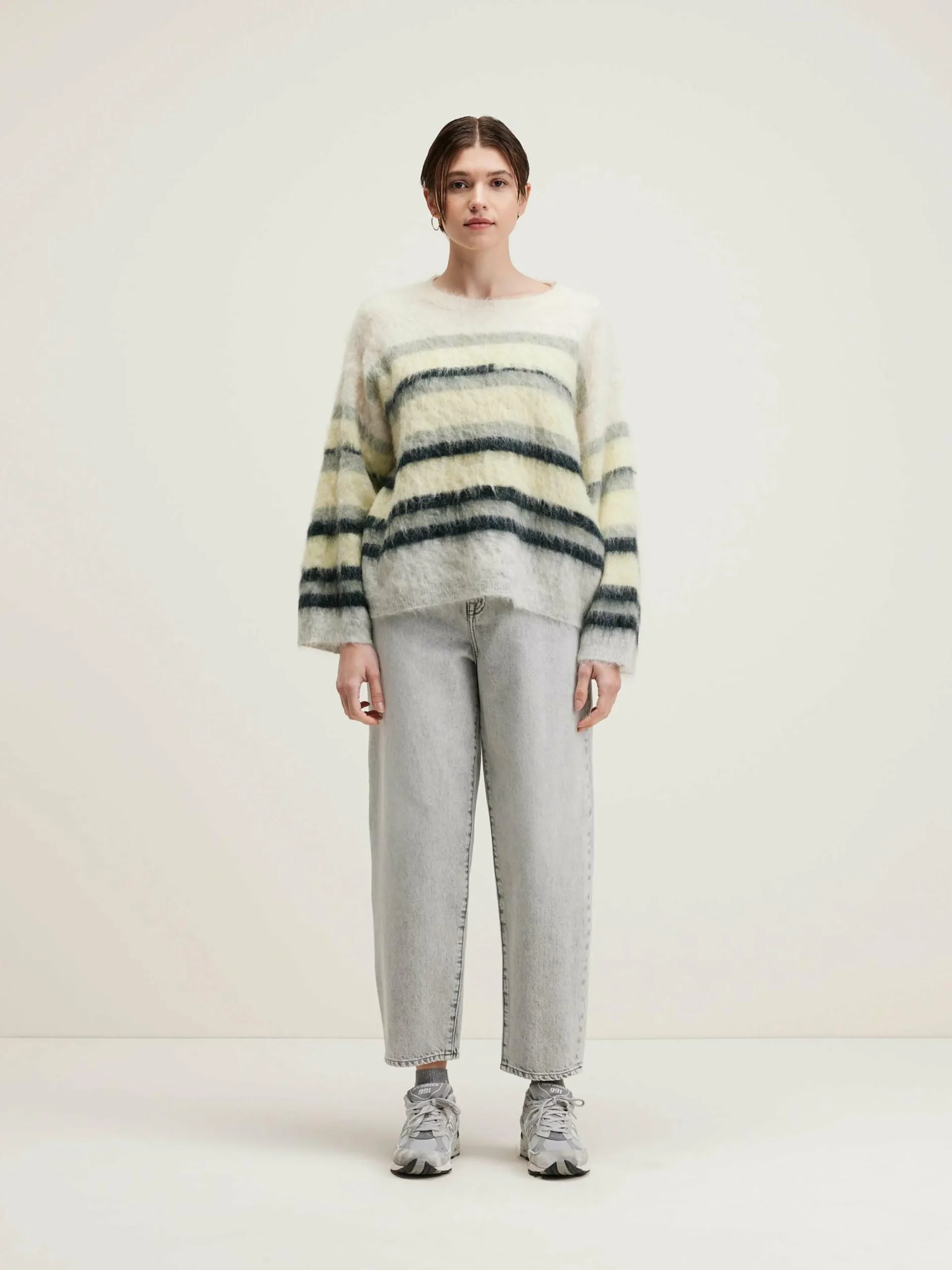 Pull oversize à rayures cassées irréguliêres en double jacquard.