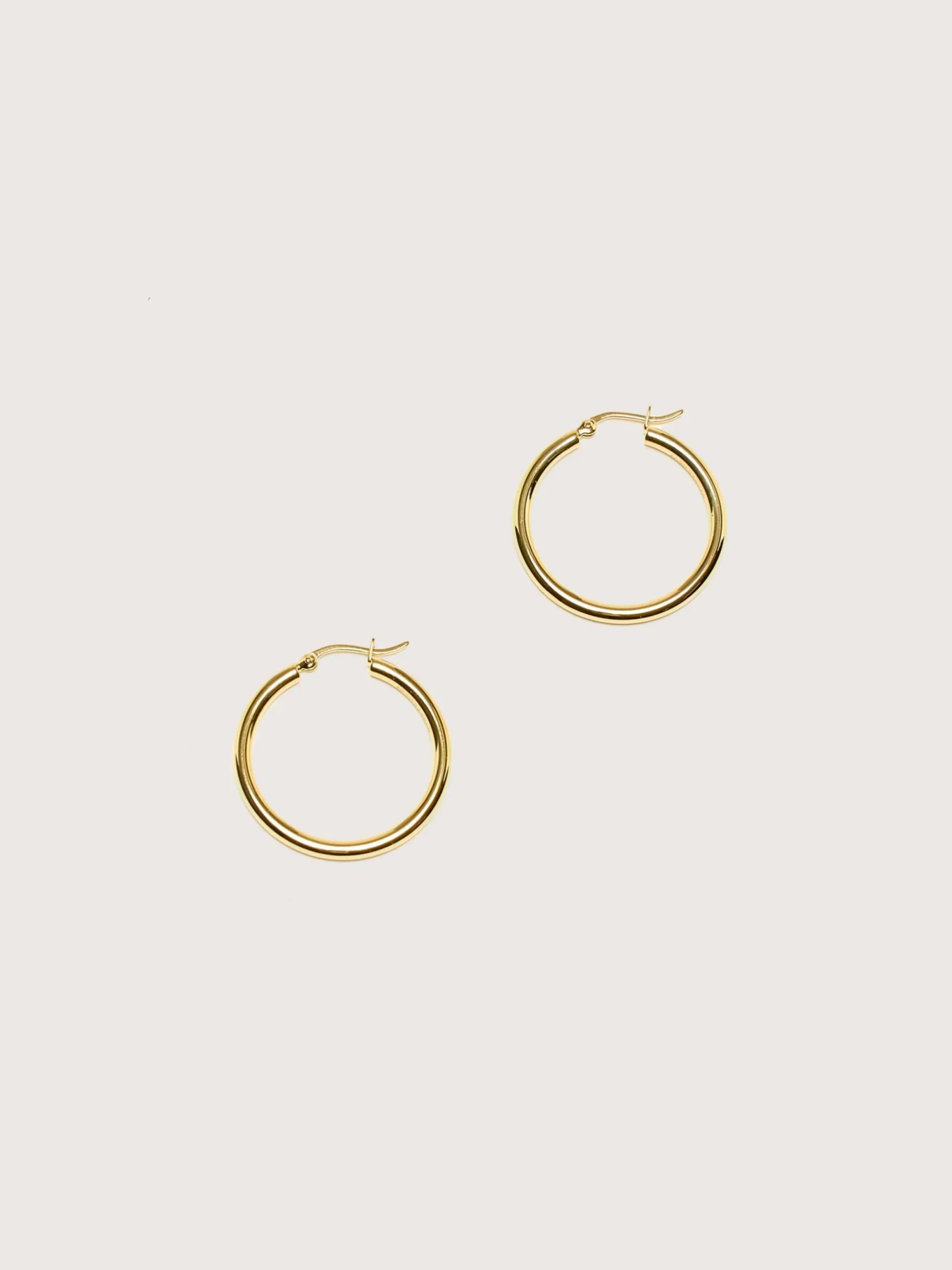 Les boucles d’oreilles Oda Grandes Créoles de RAGBAG sont fabriquées en argent sterling plaqué or 18 carats.