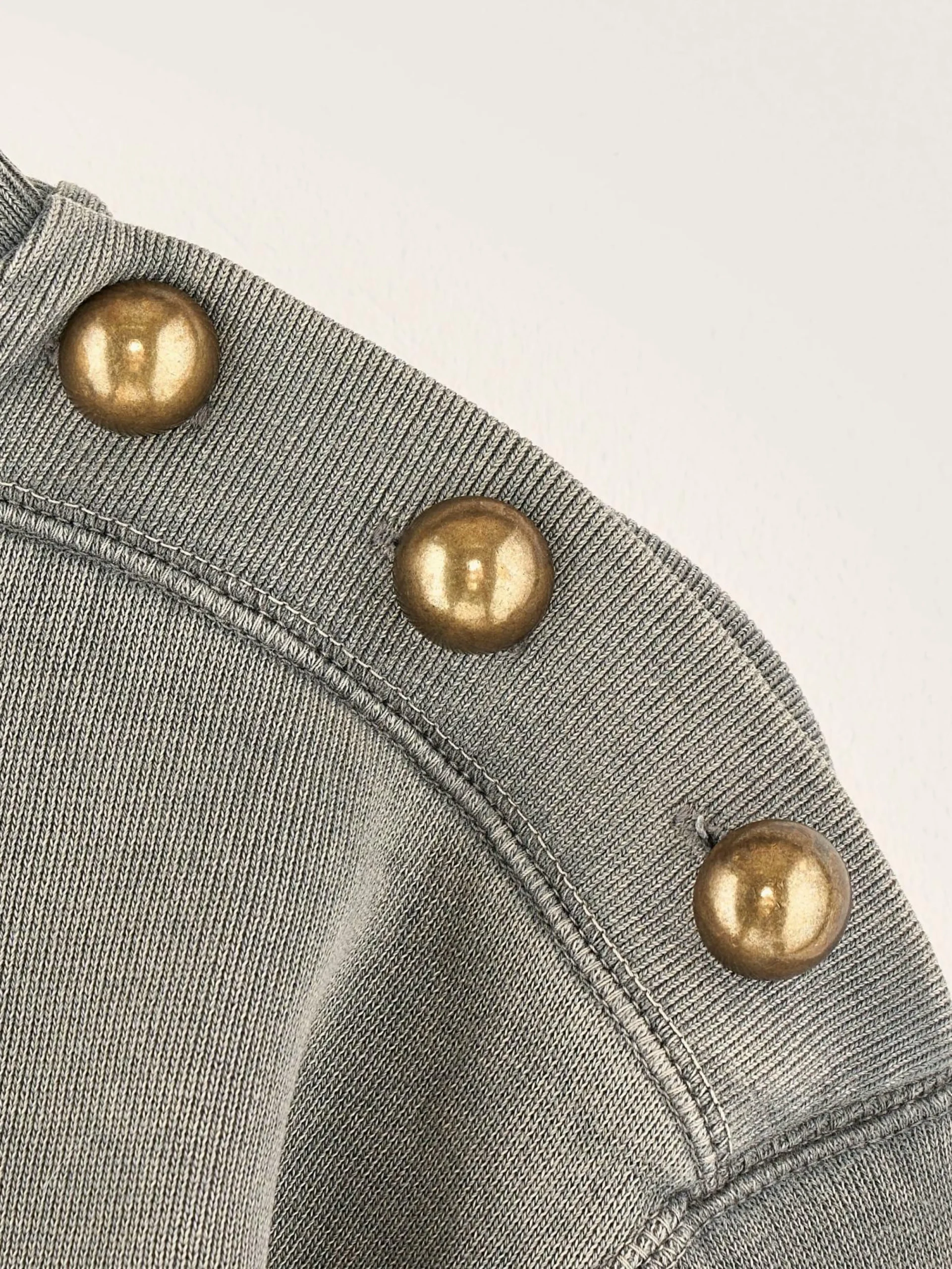 Robe en jersey noir délavé, broderie « Power » en lettres cursives sur l’avant, col rond et manches ballon aux poignets ajustés.