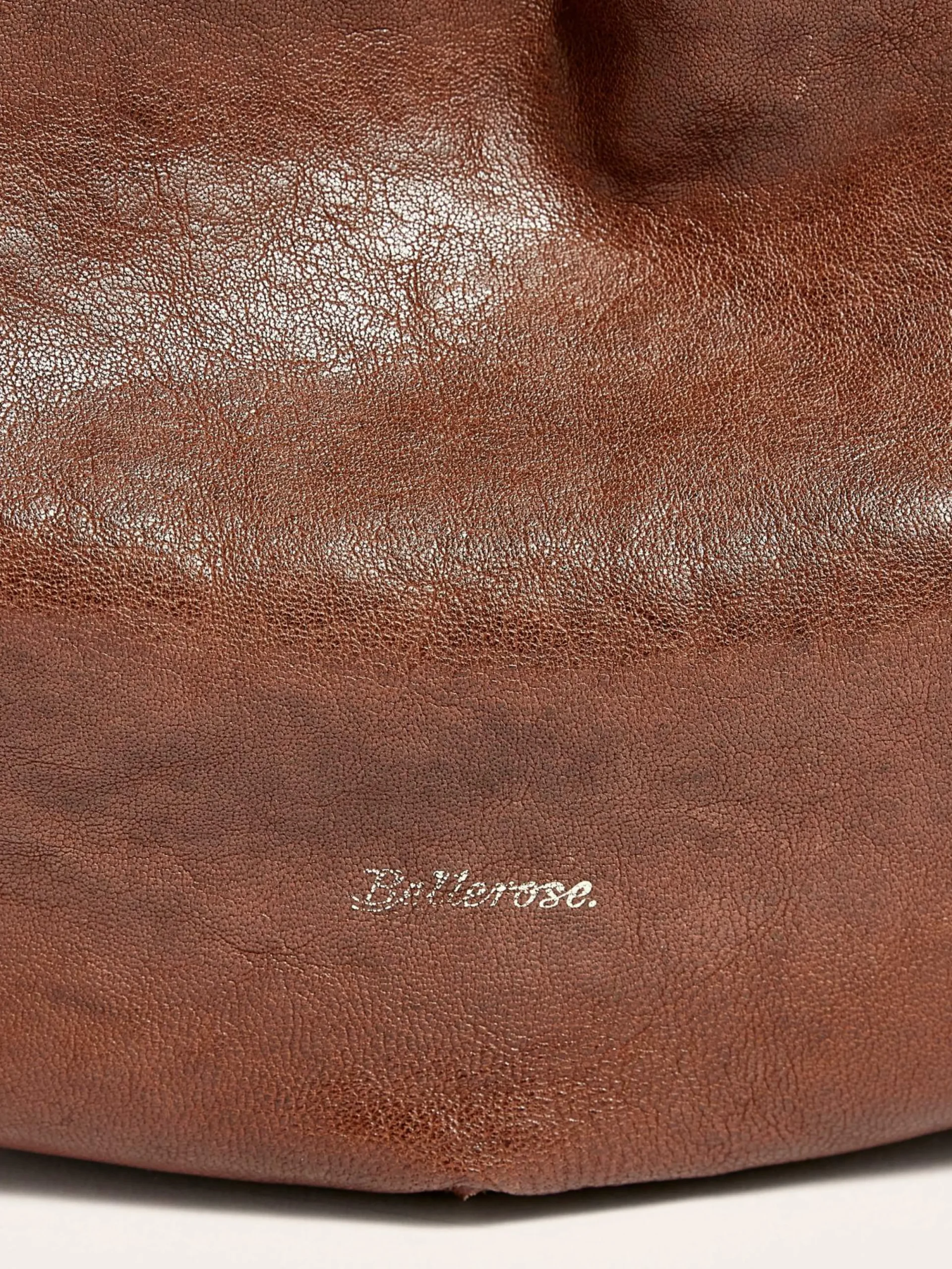 Sac bandoulière demi-lune en cuir marron et lisse.