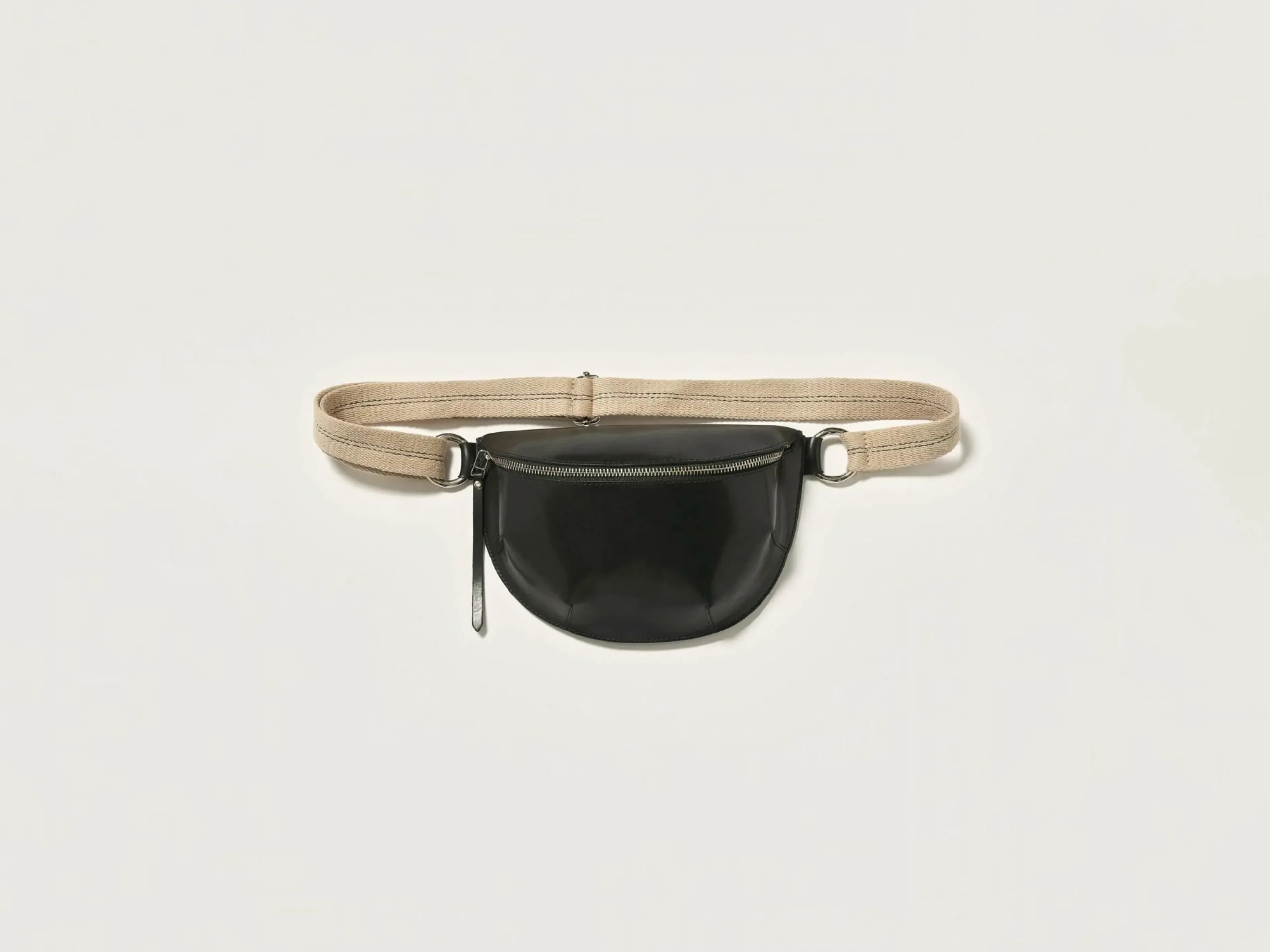 Sac en bandoulière en forme de demi-lune en cuir lisse noir.