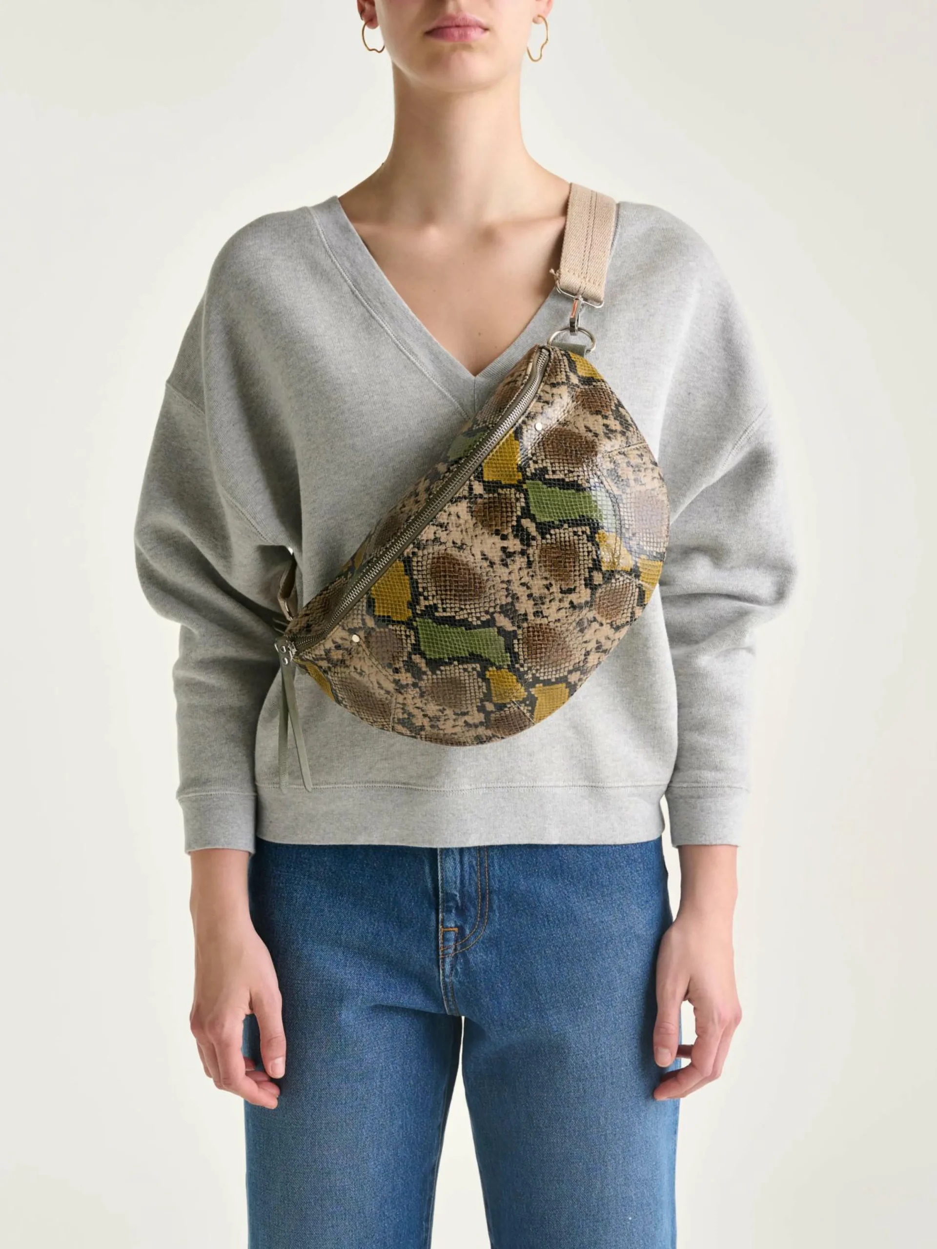 Sac bandoulière souple en cuir imprimé façon python.