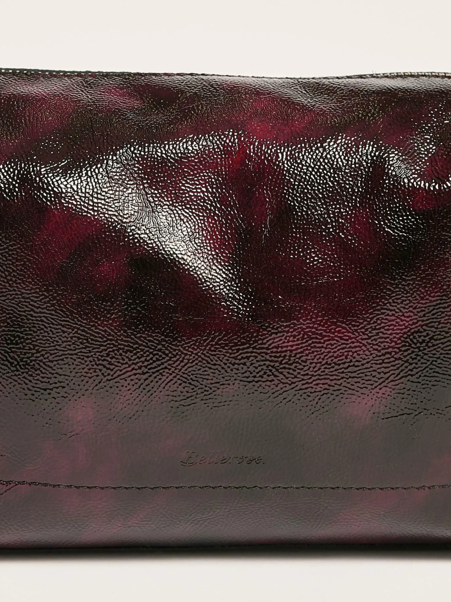 Sac souple en cuir craquant bordeaux.