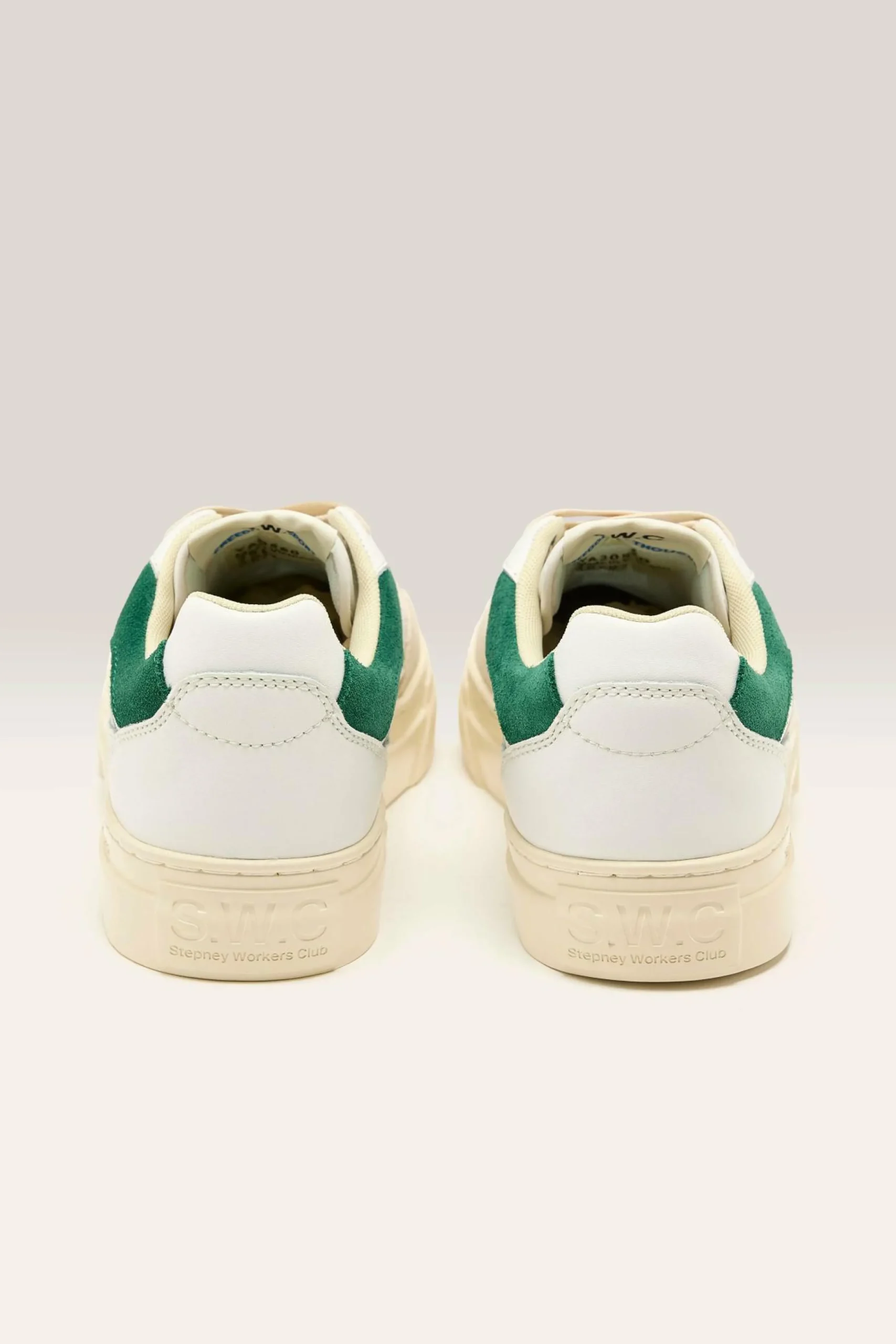 La sneakers Stepney Workers Club Pearl Leather présente une tige en cuir avec des empiècements en suède sur une semelle en caoutchouc.