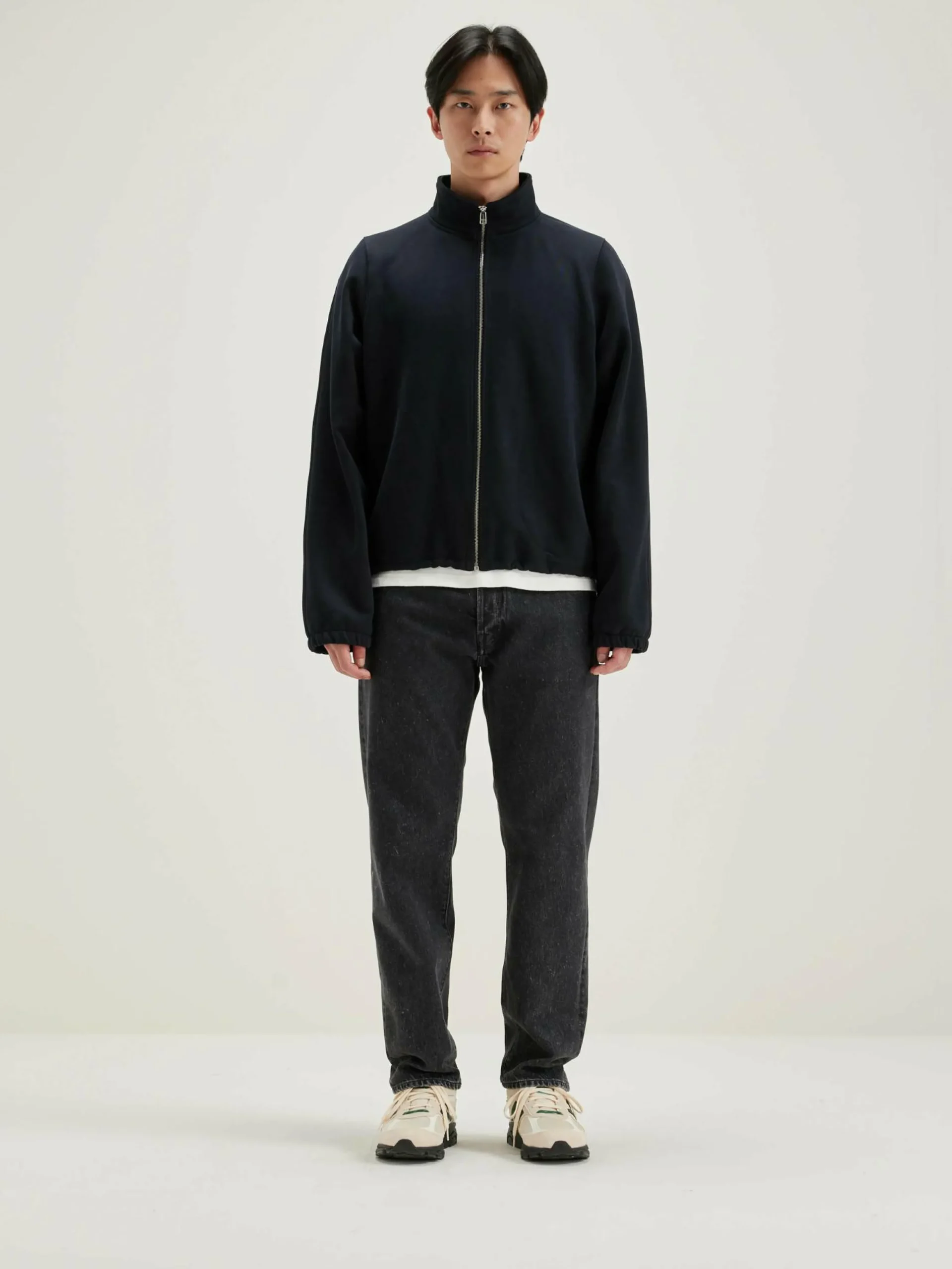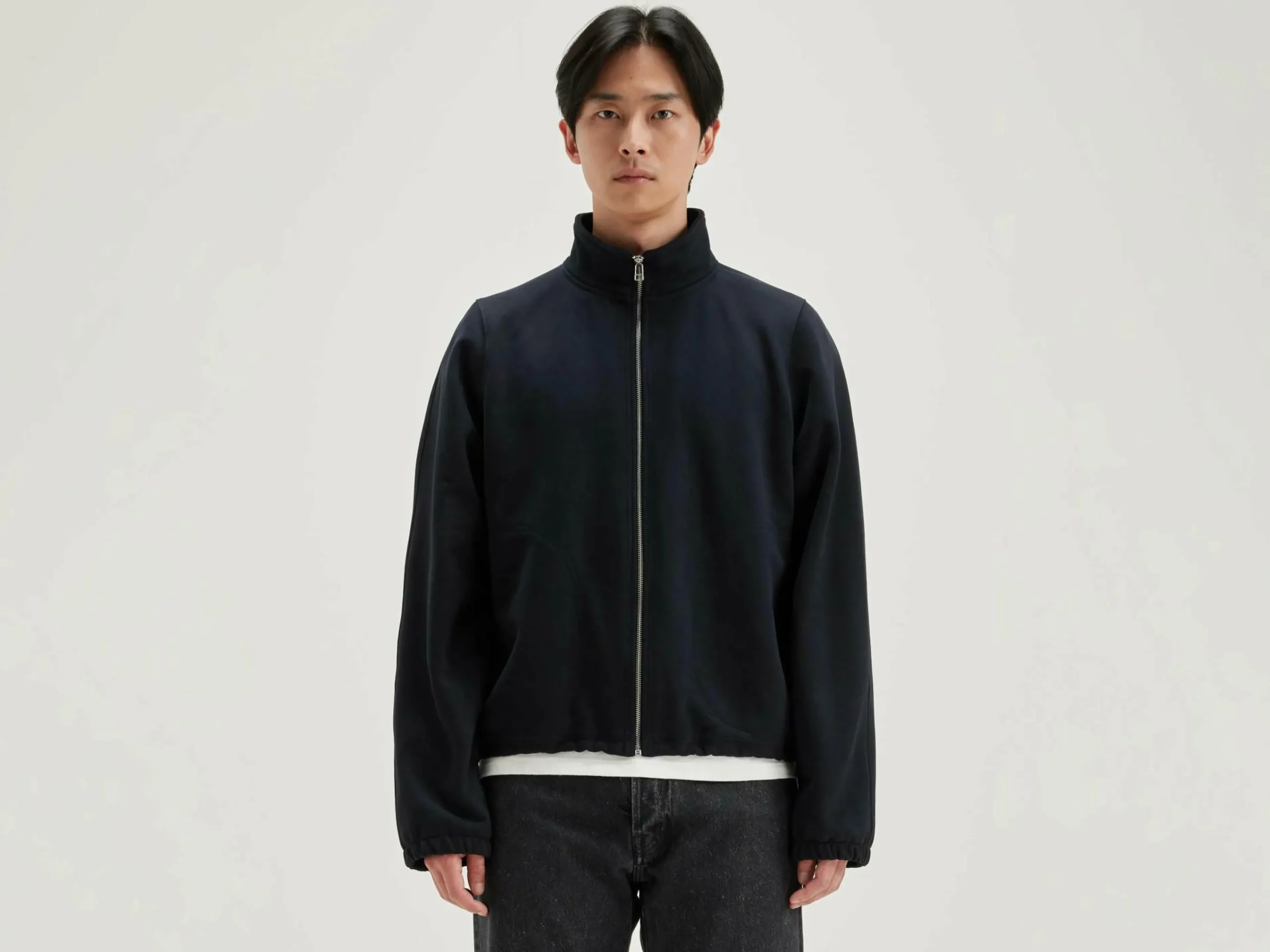 Sweatshirt décontracté en jersey noir-bleu au toucher néoprène.