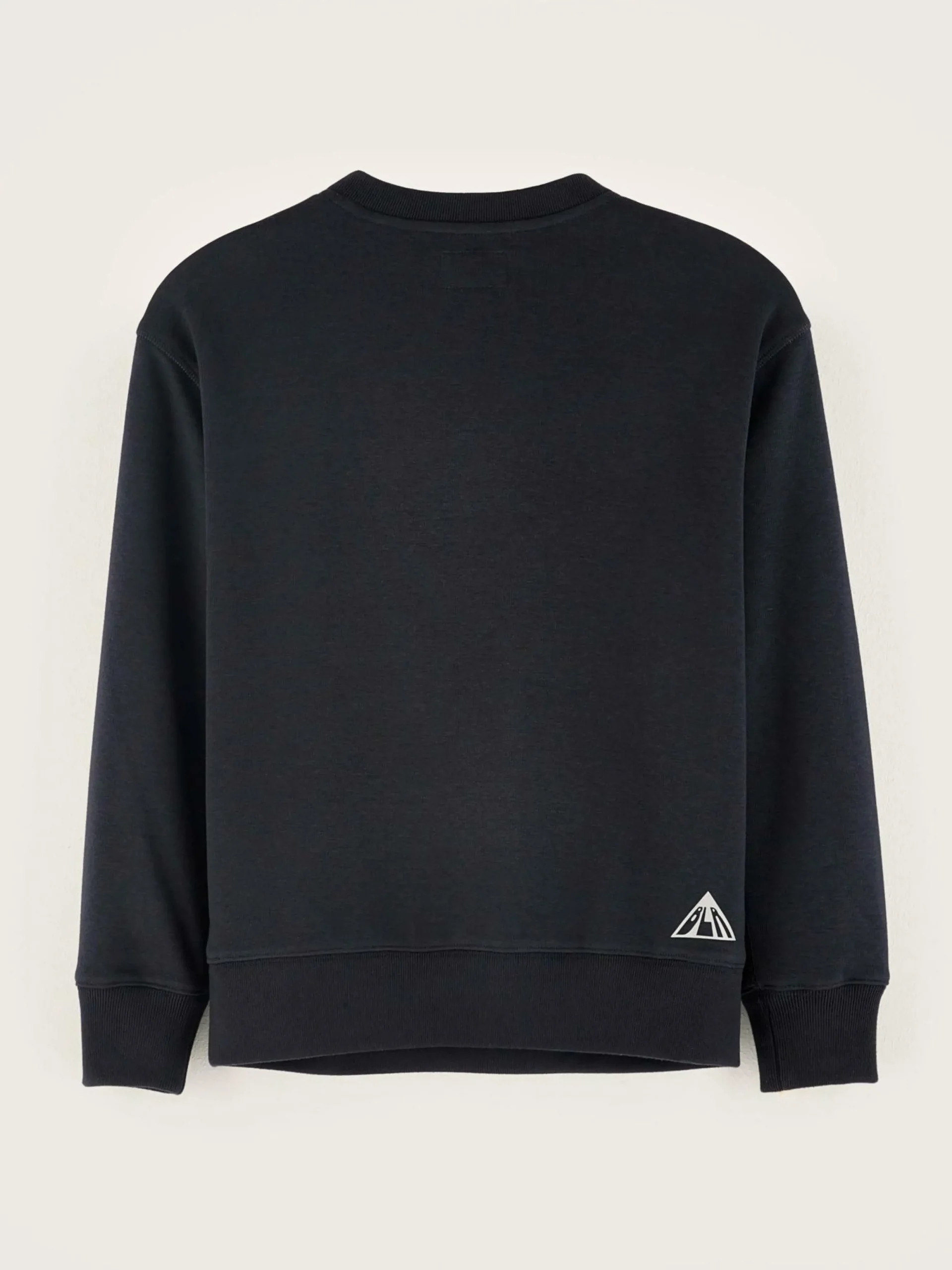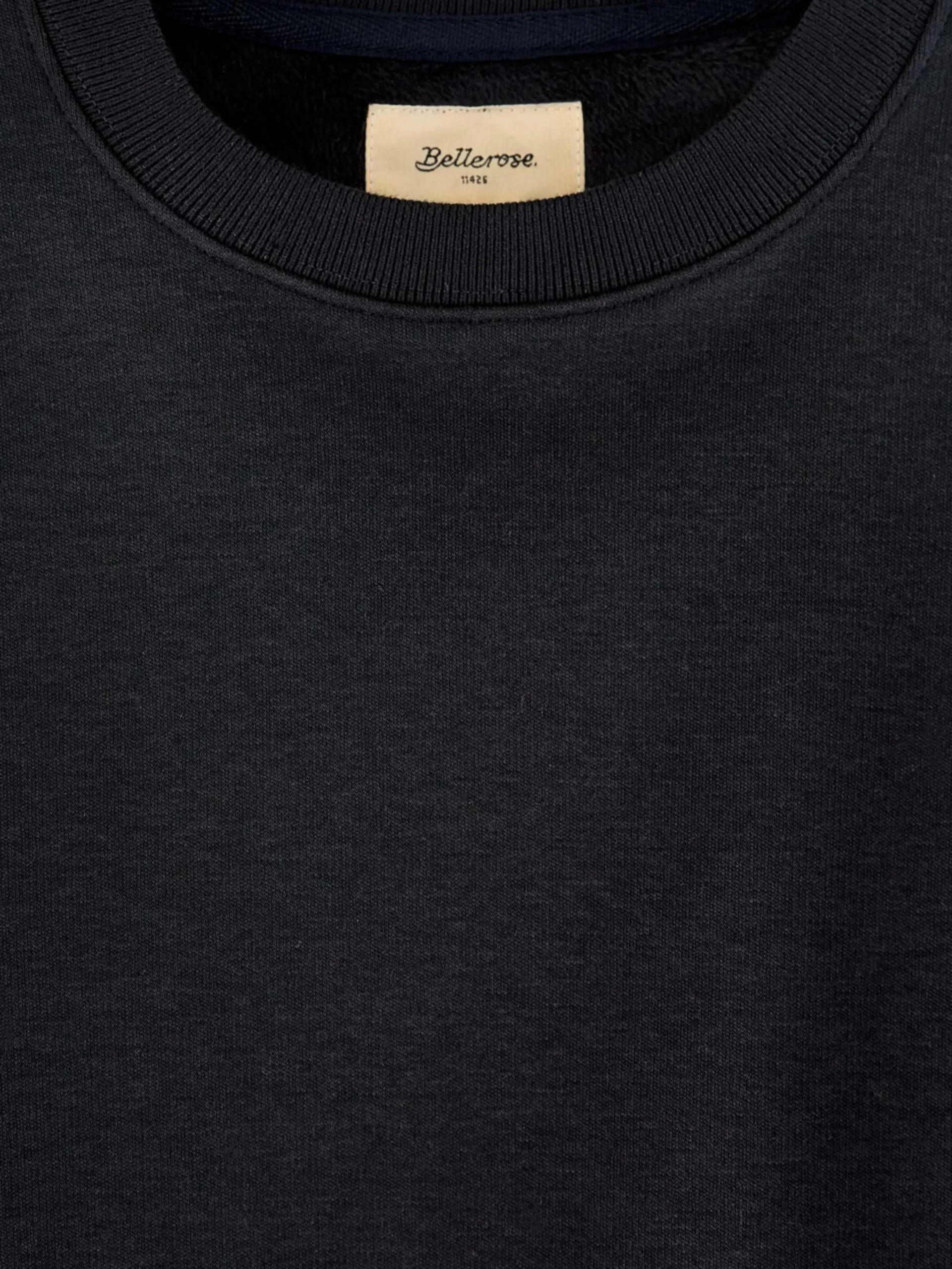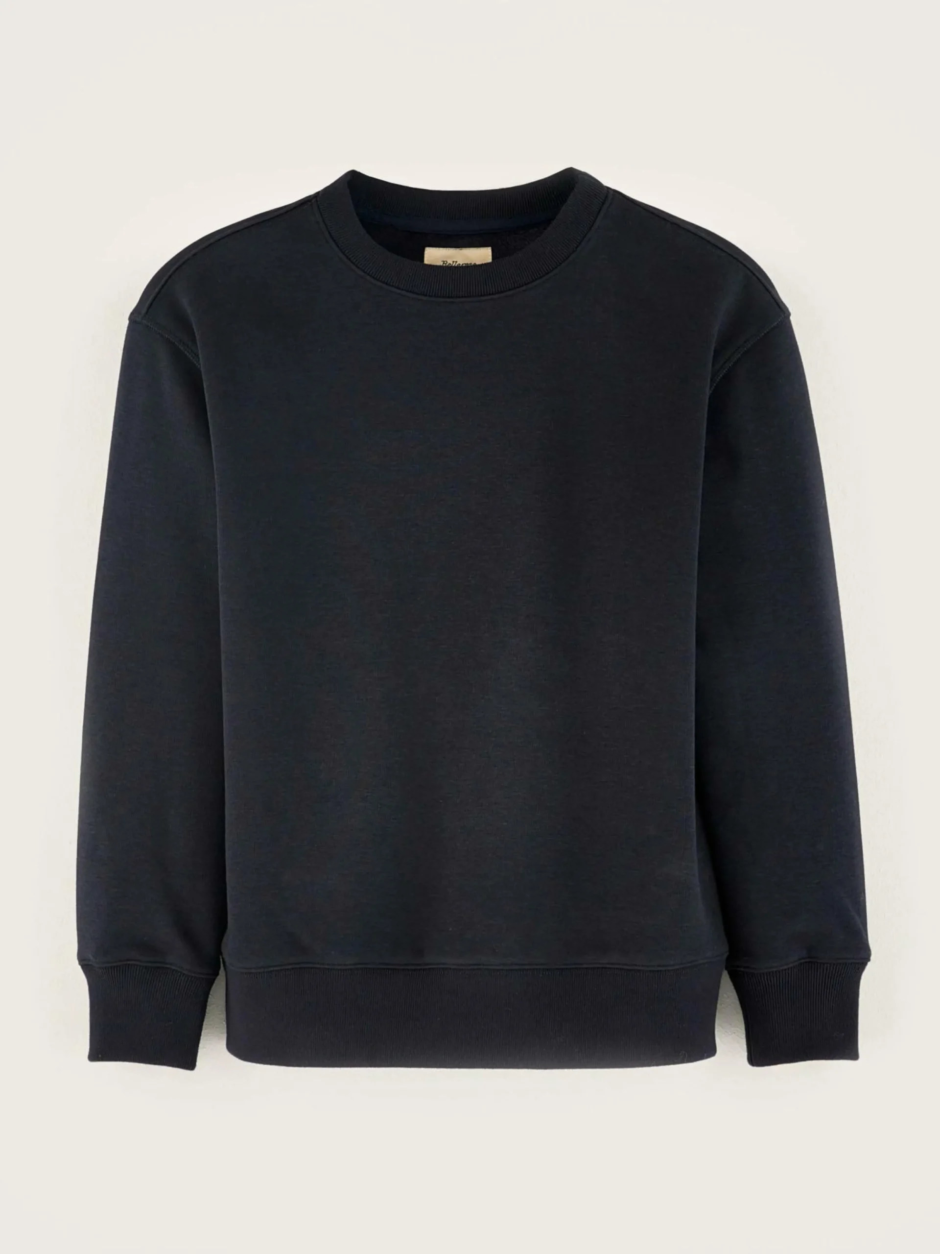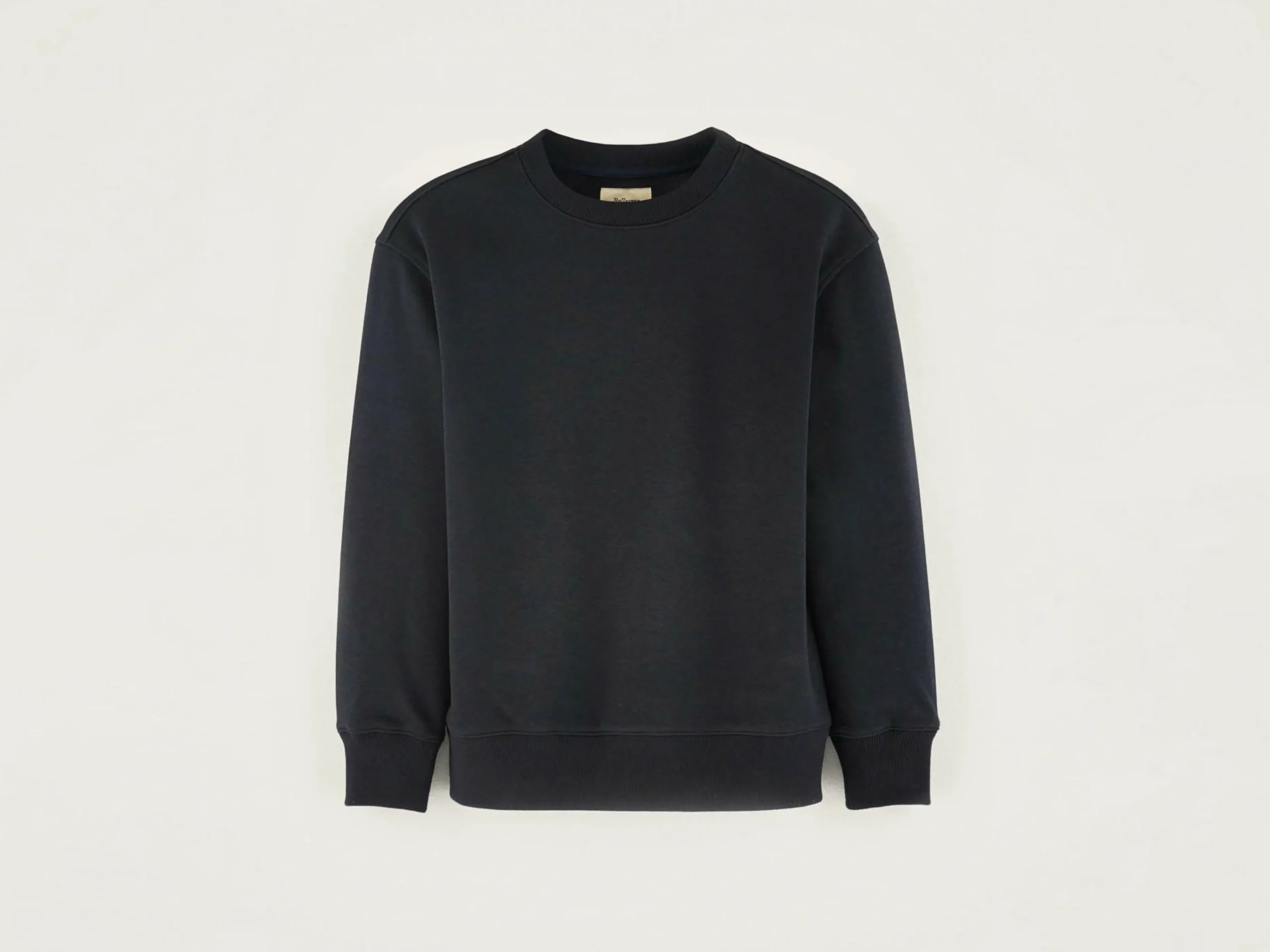 Sweatshirt coupe classique, col rond, couleur bleu foncé.