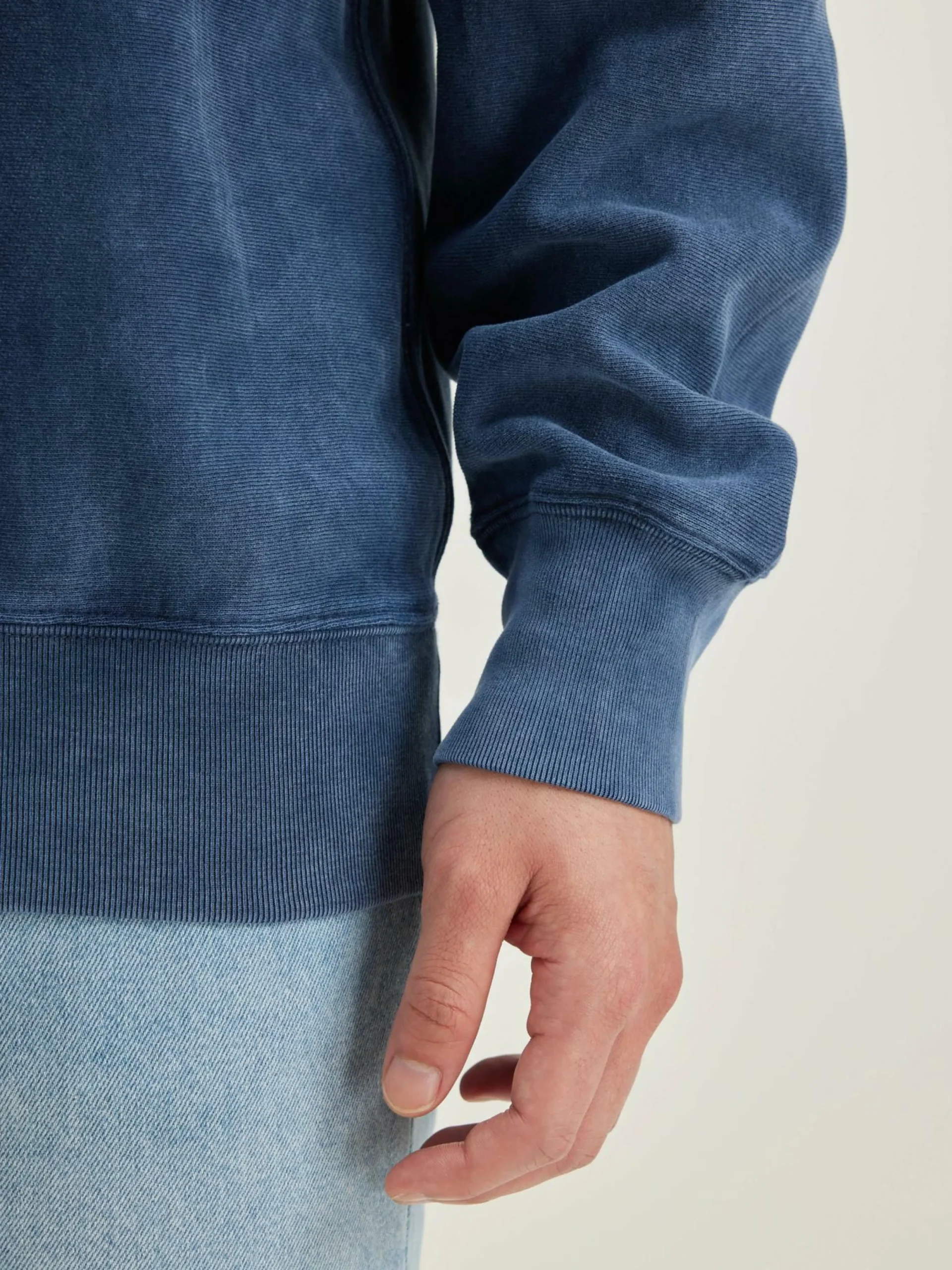 Sweatshirt classique en jersey de coton bleu foncé.