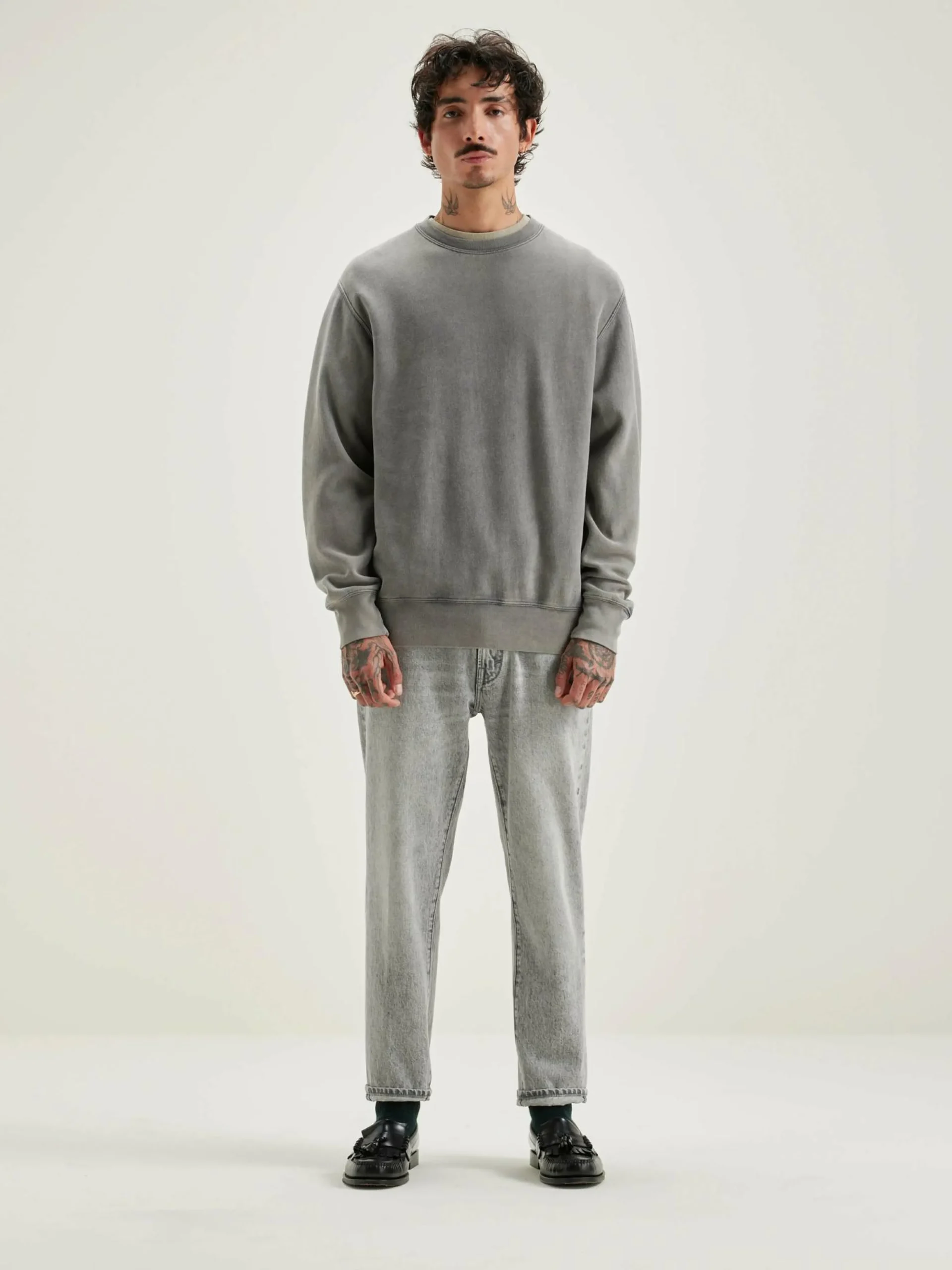 Sweatshirt classique en jersey de coton gris foncé.