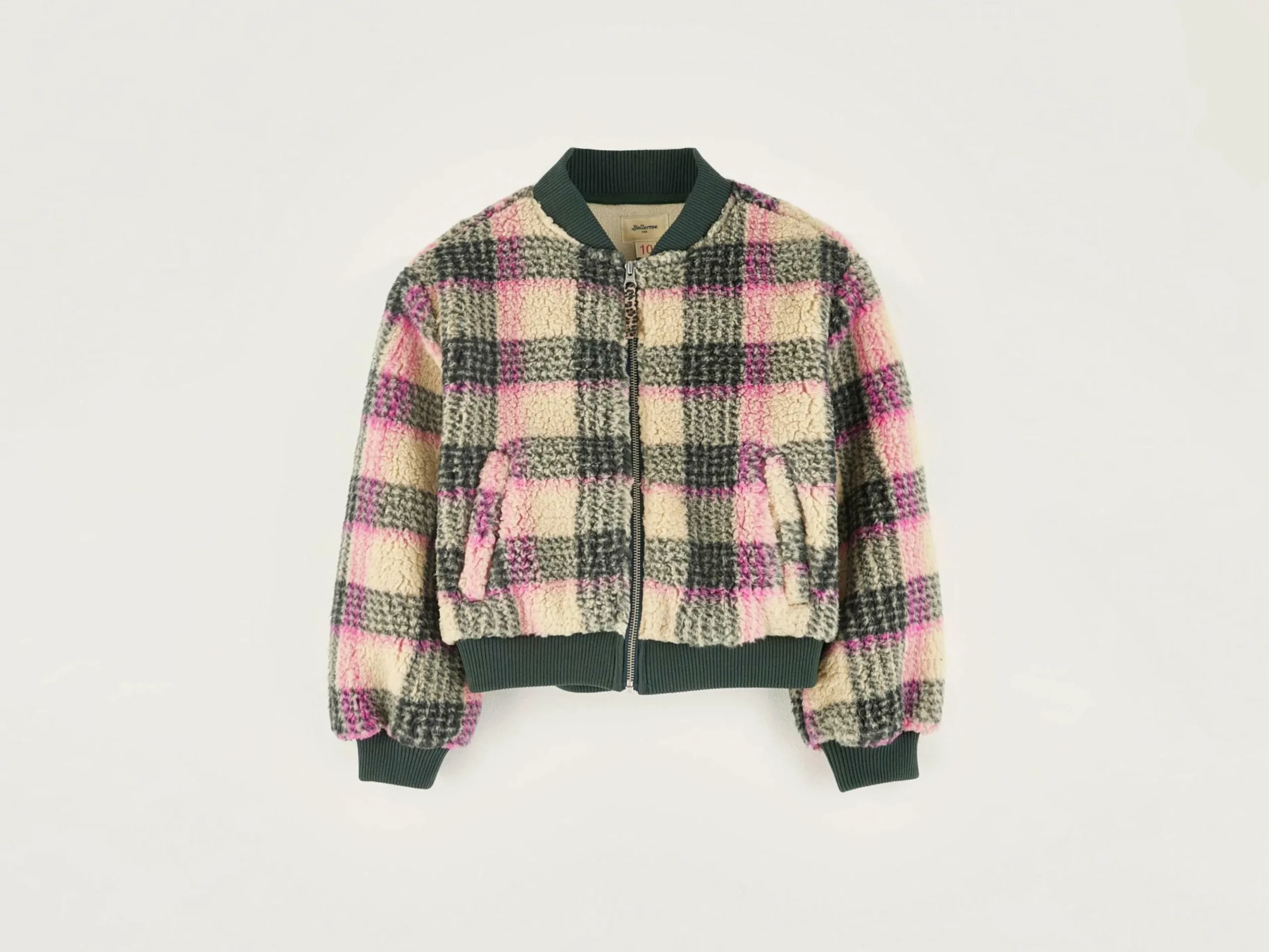 Sweatshirt décontracté style bomber, en teddy à carreaux.