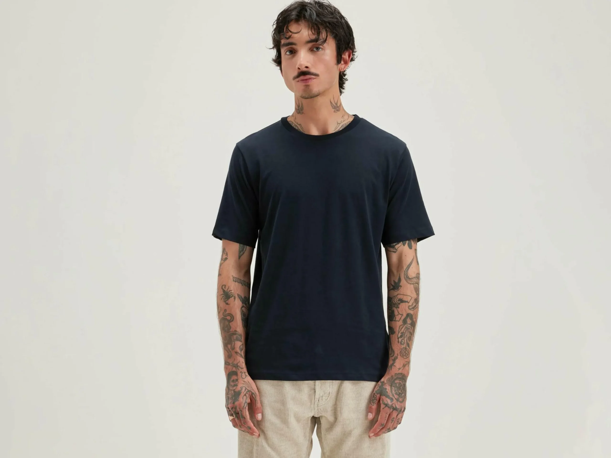 T-shirt classique à manches courtes en jersey de coton léger bleu marine.