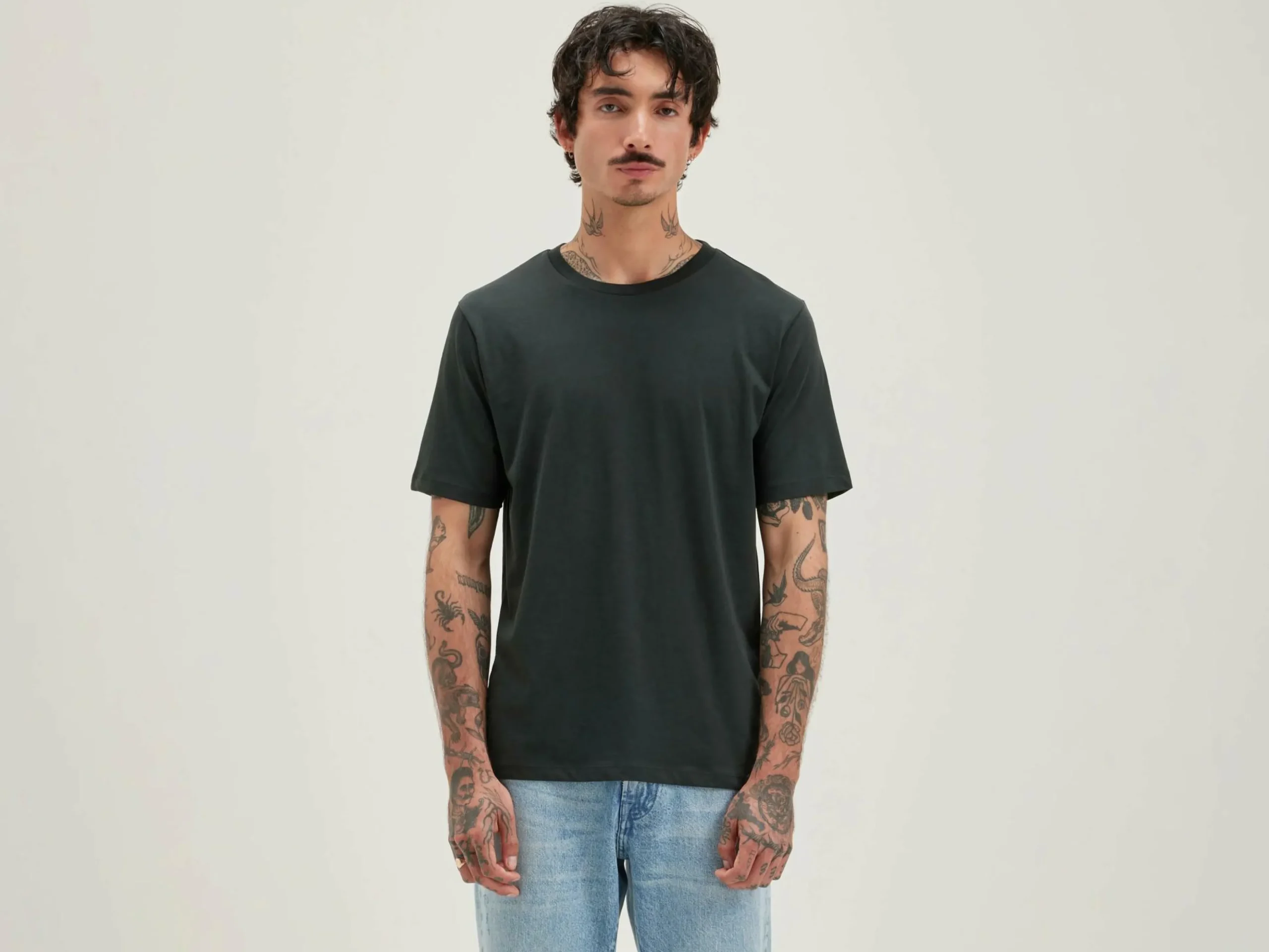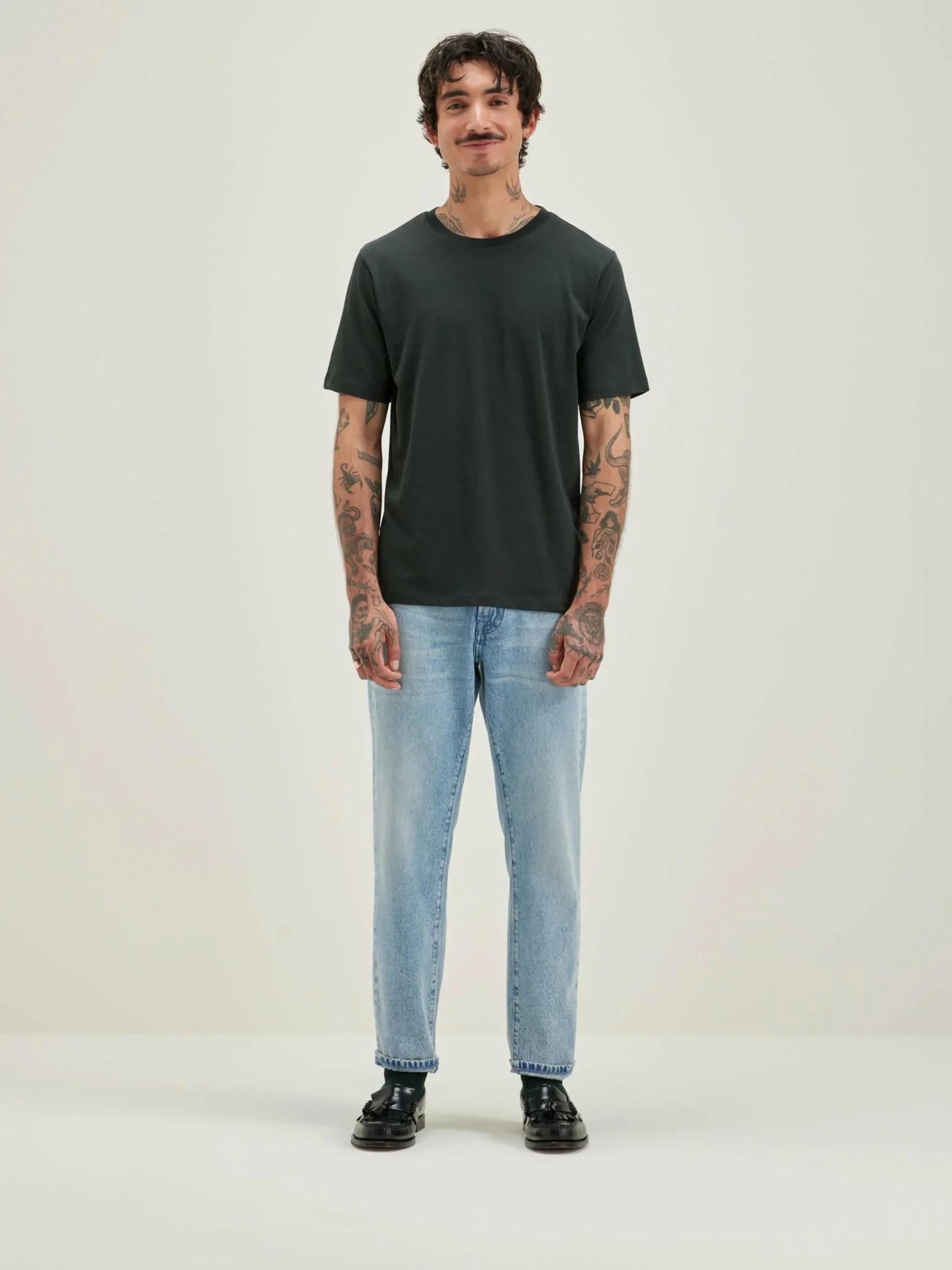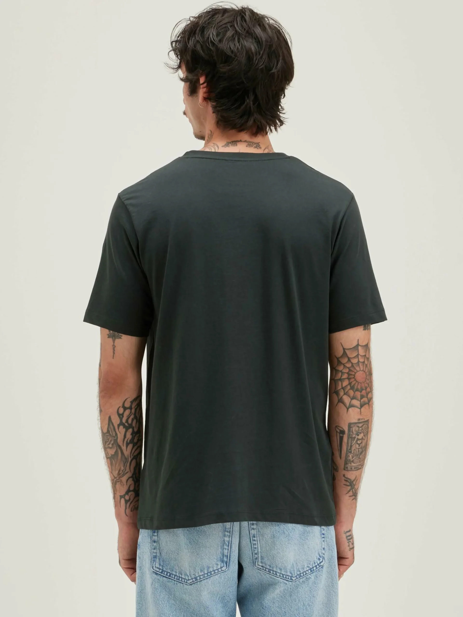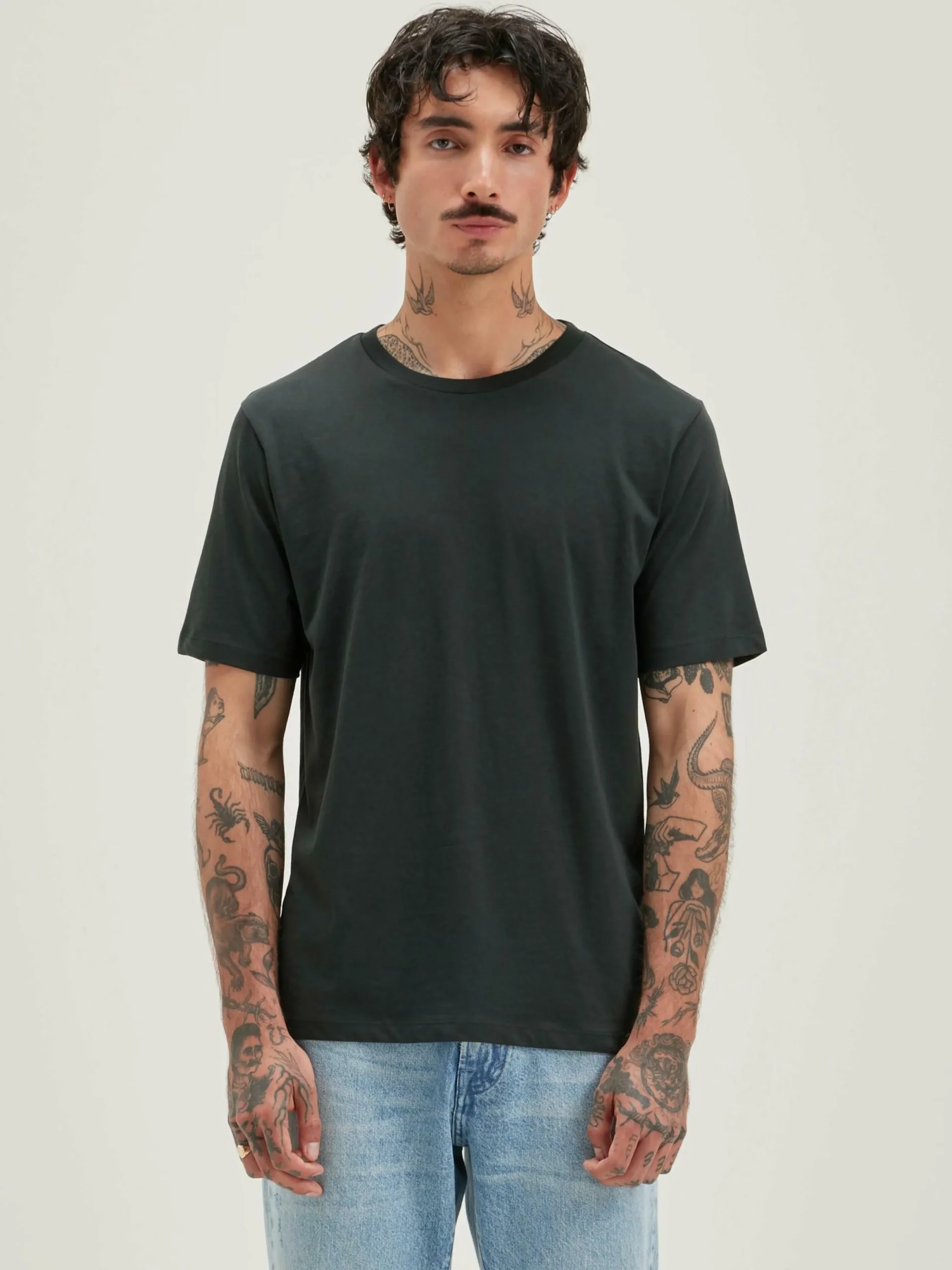 T-shirt classique à manches courtes en jersey de coton léger gris foncé vintage.
