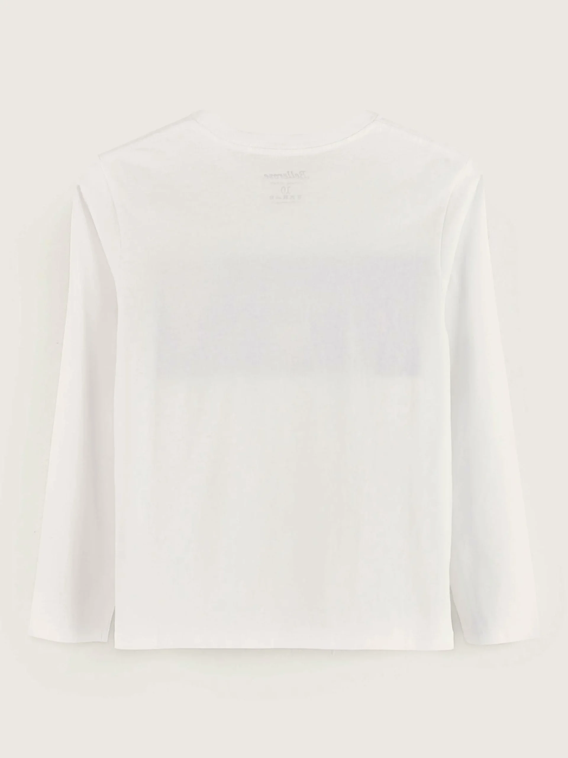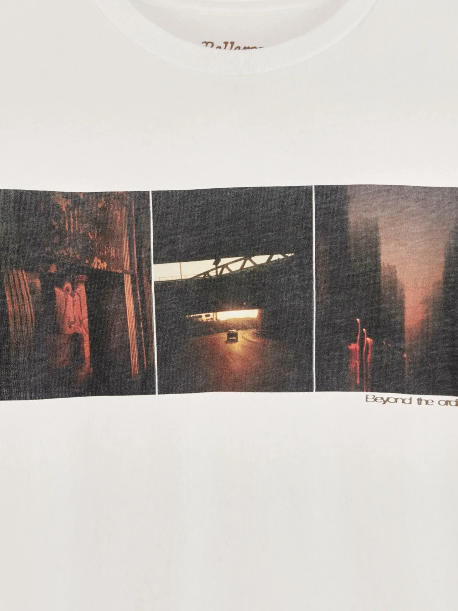 T-shirt classique à manches longues en jersey de coton blanc, imprimé d’un triptique photo par Daniil Lavrovski.