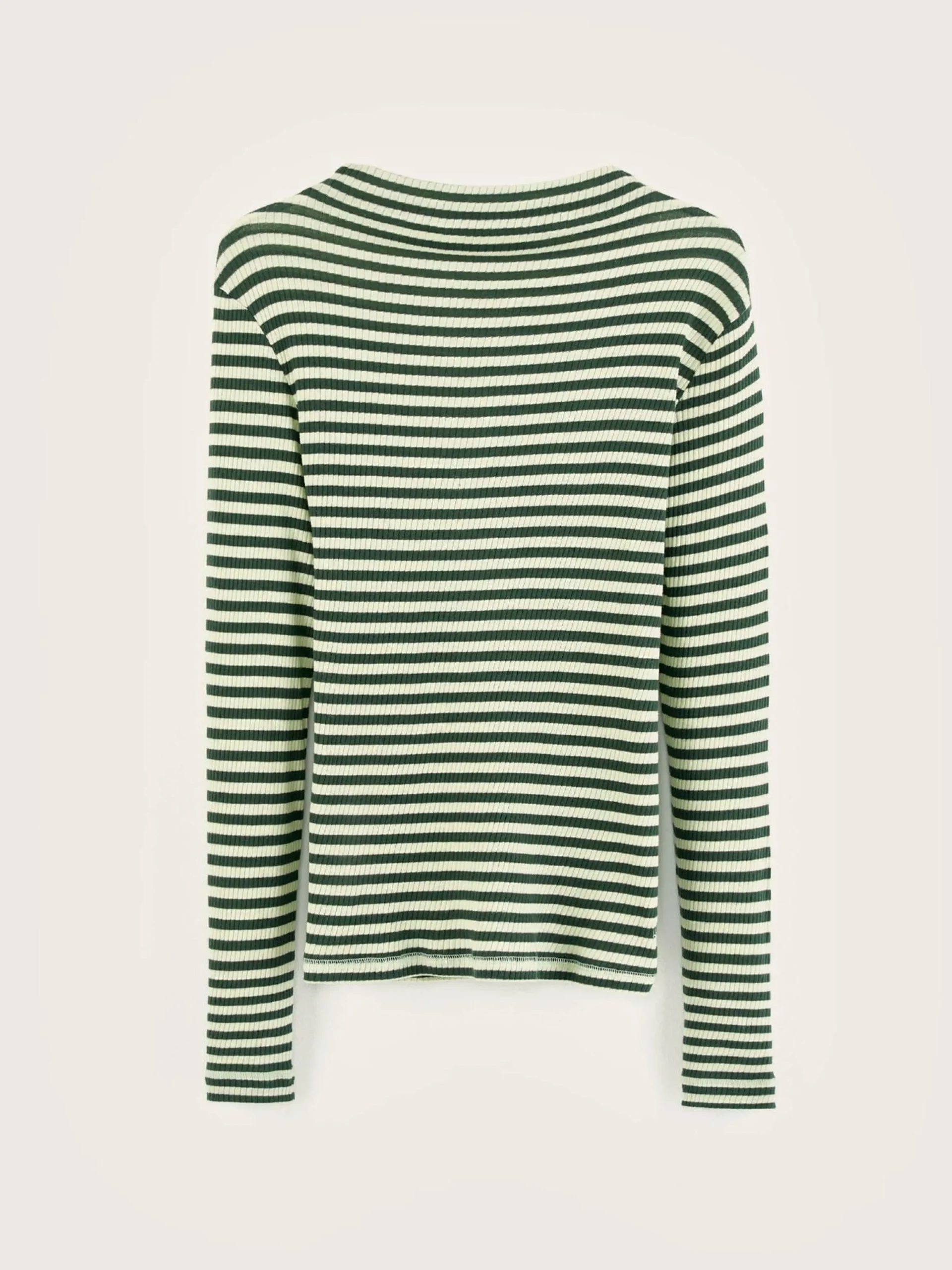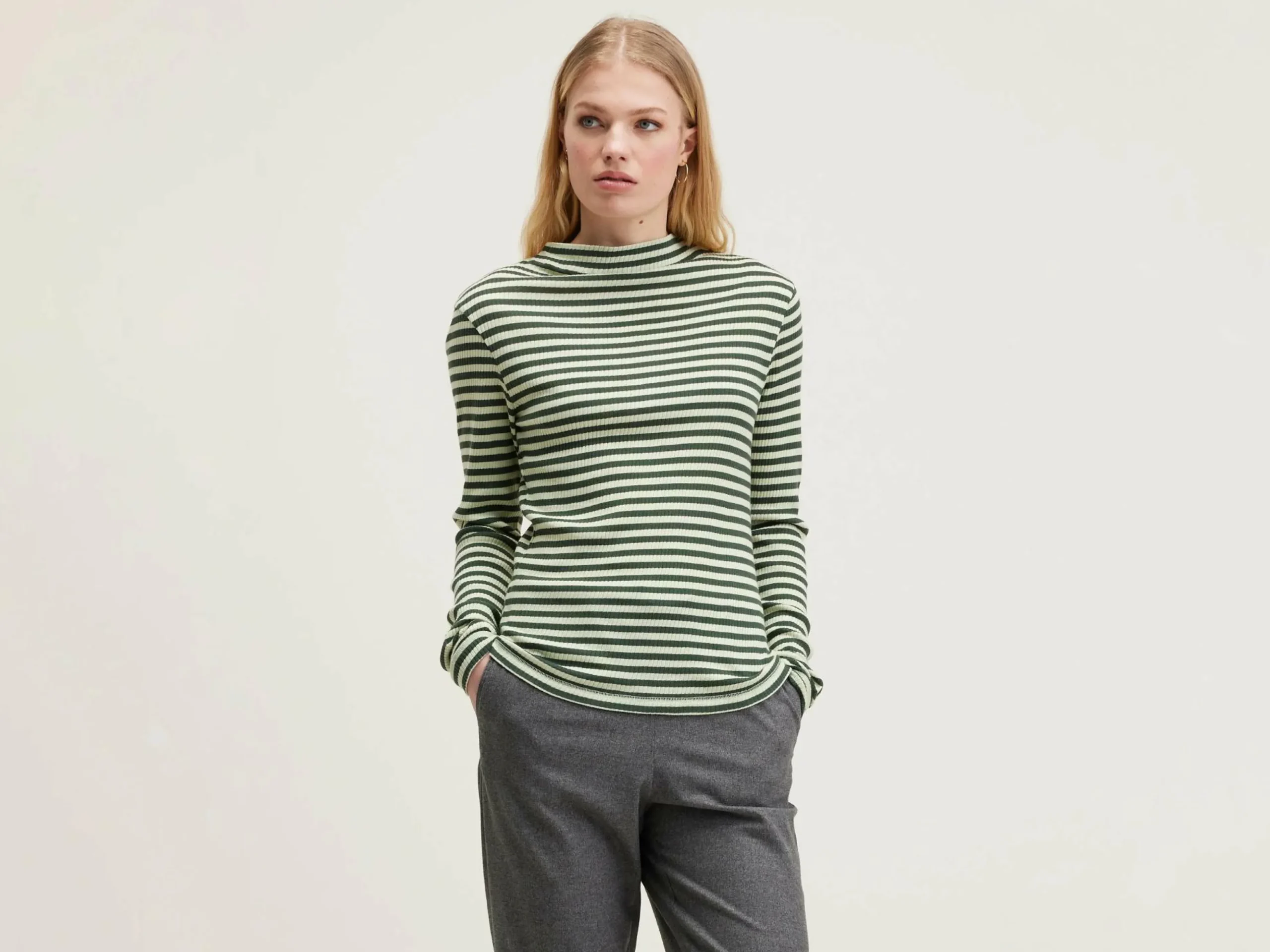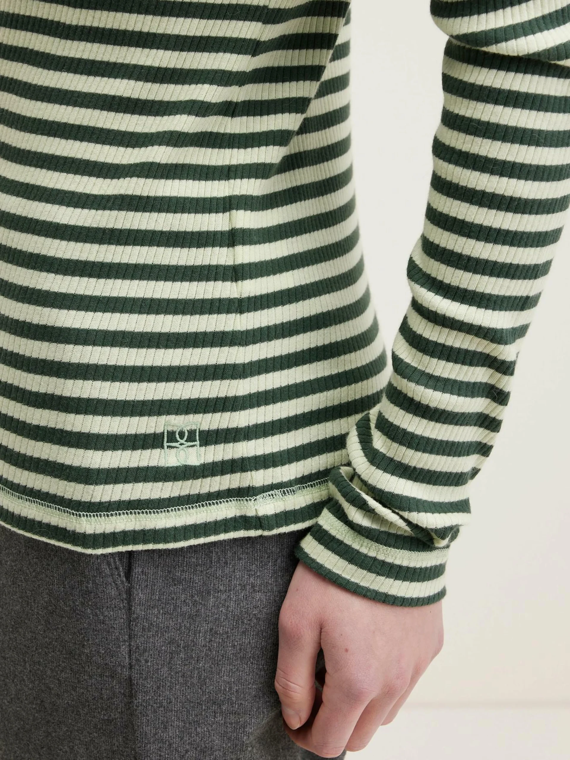 T-shirt slim-fit léger, en jersey côtelé, rayé vert.