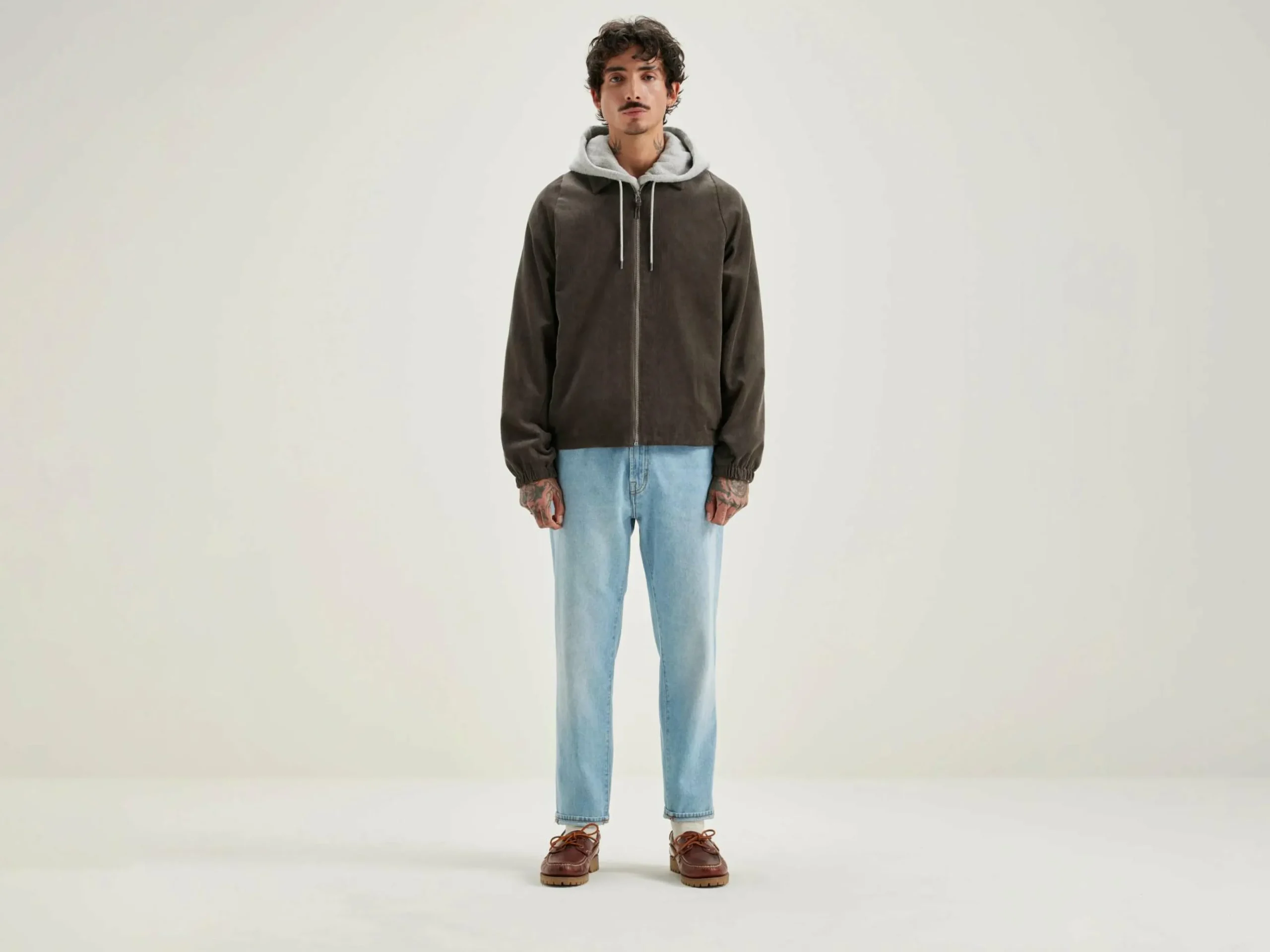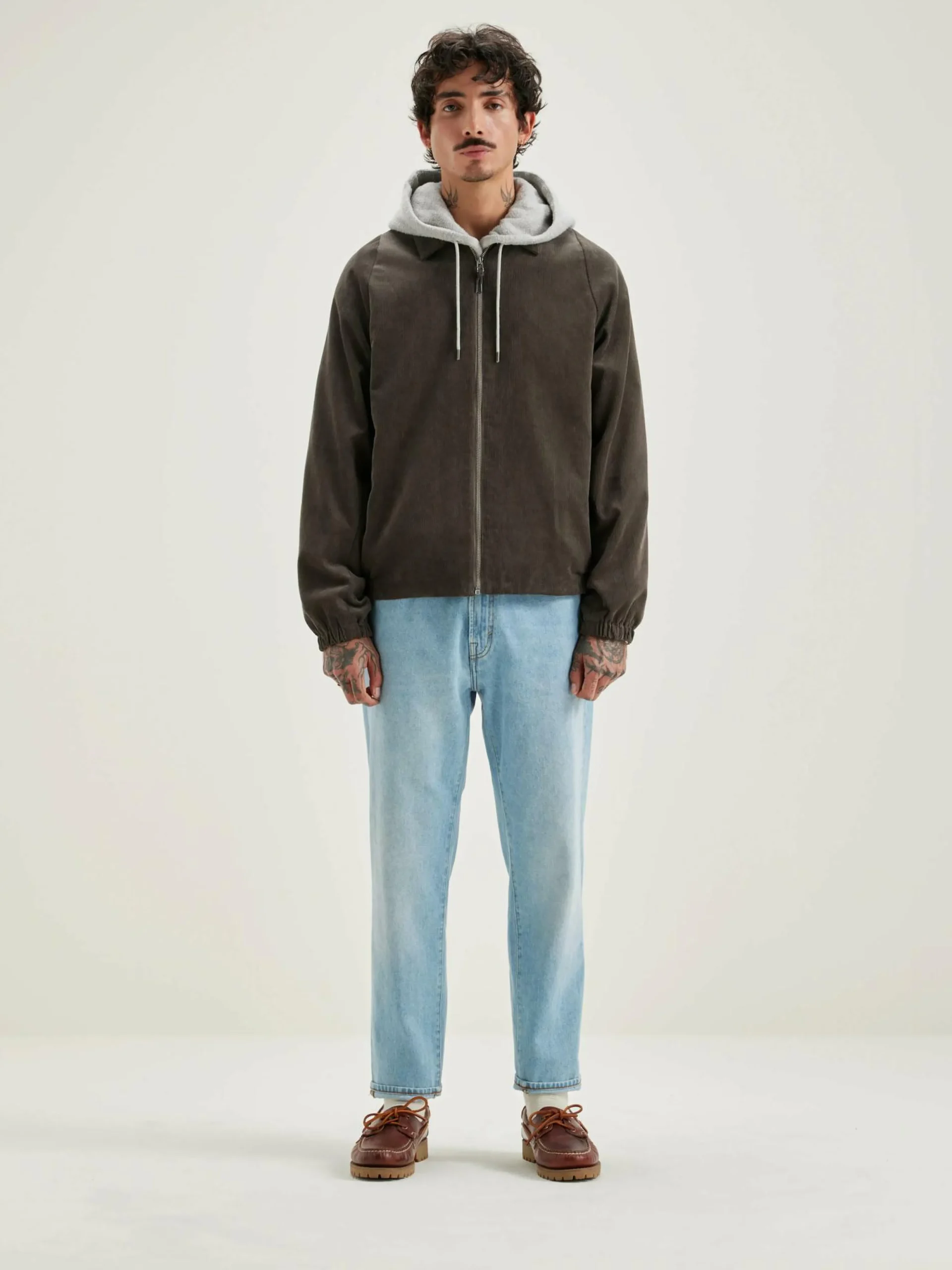 Veste de golf coupe classique et droite en velours côtelé gris foncé.