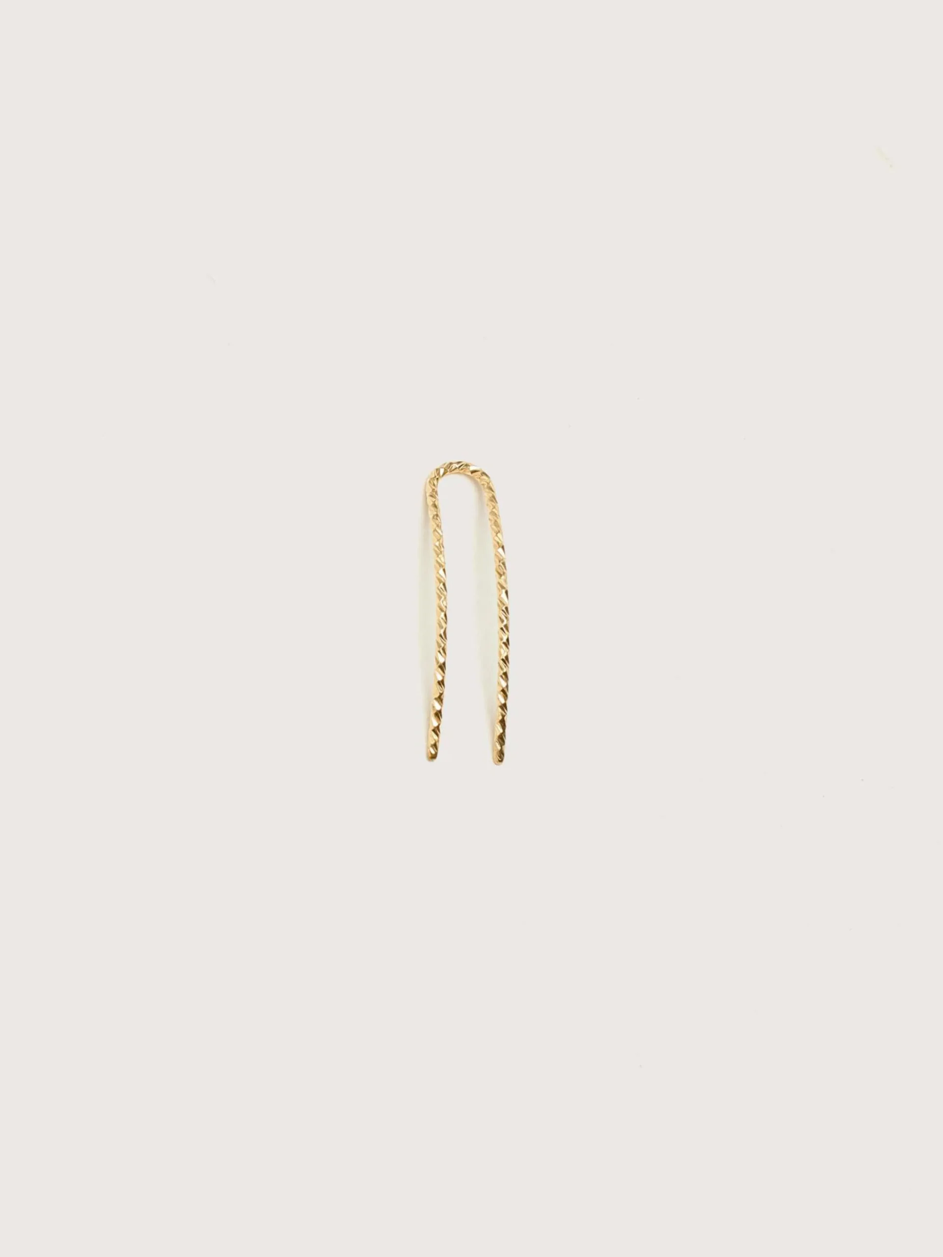 La boucle d’oreille Yay Gold Climber présente un fil texturé allongé, rempli d’or 14k, qui se courbe le long du lobe de l’oreille.